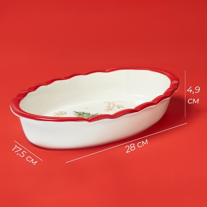 Блюдо для запекания новогоднее Доляна «Волшебное дерево», 28?17.5?4.9 см, доломит, белое, красноеВопросы по товару