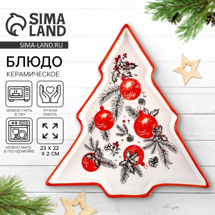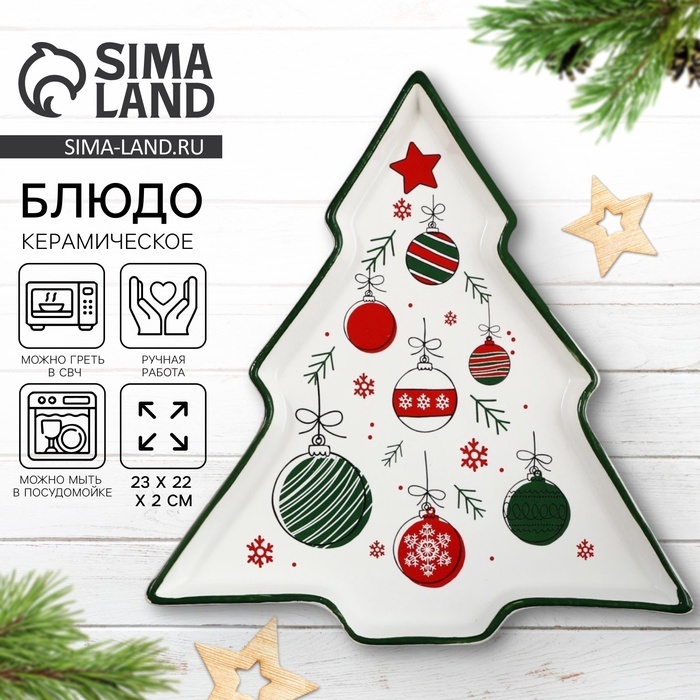 Блюдо керамическое в форме ёлки — идеальный выбор для тех, кто ценит качество и стиль. Размер блюда – 23 ? 22 ? 2 см Преимущества: * Прочность и долговечность: изготовлено из высококачественной керами... Показать описаниеки, которая устойчива к царапинам и сколам. * Экологичность: не содержит вредных веществ, безопасно для здоровья. * Устойчивость к высоким температурам: можно использовать для подачи горячих блюд. * Оригинальный дизайн: украшено ярким новогодним рисунком, который поднимет настроение и добавит радости в праздничные дни. * Универсальность: подходит для сервировки стола, хранения продуктов или использования в качестве подарка. * Отличный выбор для новогодних праздников: станет прекрасным дополнением к праздничному столу или отличным подарком для родных и друзей.