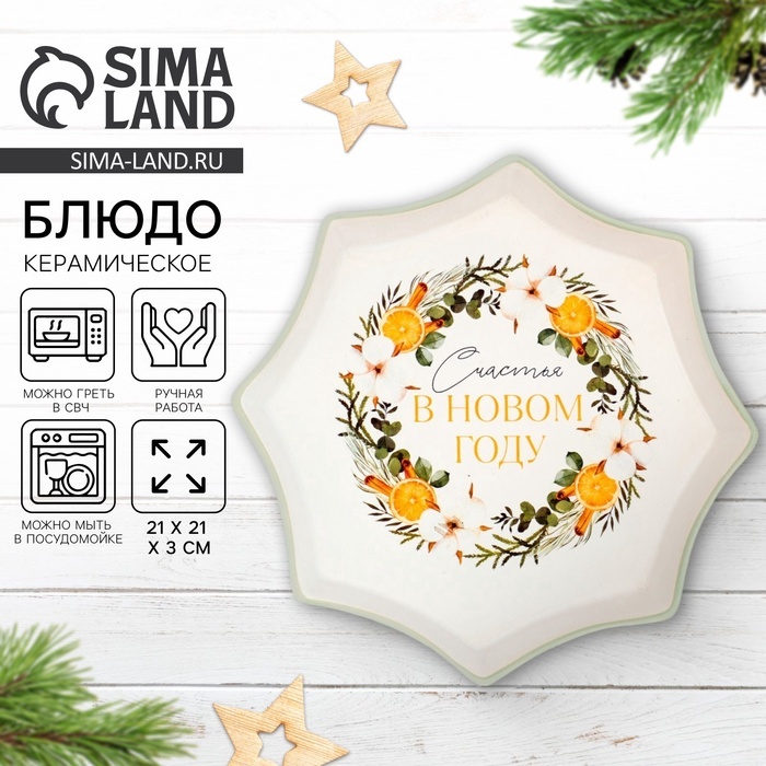 Блюдо новогоднее «Счастья в новом году», 21?21?3 см, ручная работаВопросы по товару