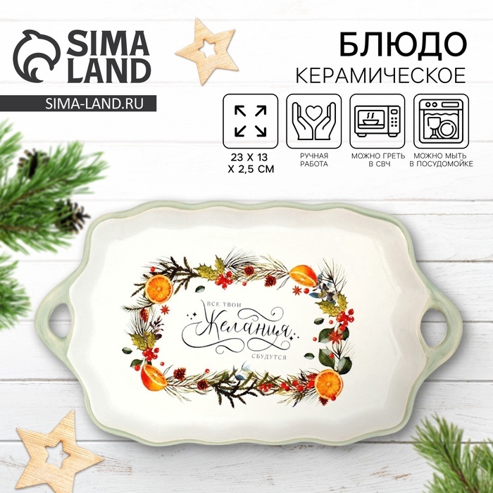 Блюдо новогоднее «Желания», 23?13?2.5 см, ручная работаВопросы по товару