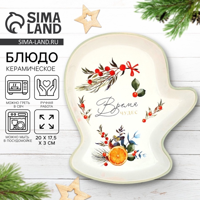 Блюдо новогоднее «Время чудес», 20?7.5?3 см, ручная работаВопросы по товару