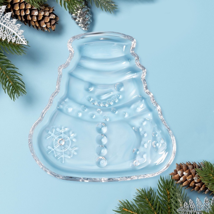 Блюдо «Новогоднее чудо. Снеговик», 16.7?16.4?2.3 см, стекло, прозрачноеВопросы по товару