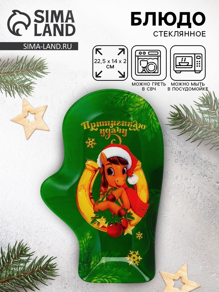 Блюдо новогоднее «Притягиваю удачу», 22.5?14?2 см, стеклоВопросы по товару