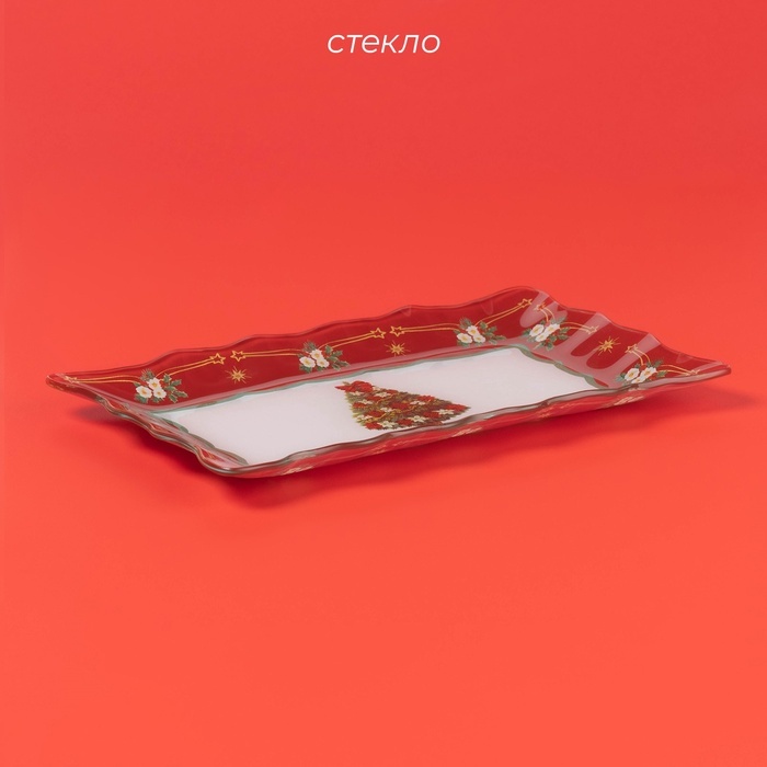 Блюдо Доляна «Новогодняя ель», 25?15 см, стекло, красноеВопросы по товару