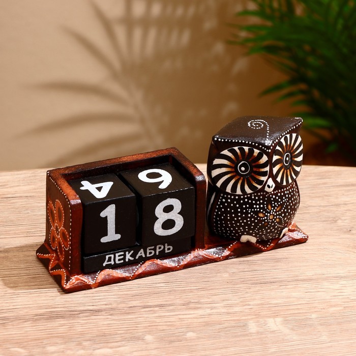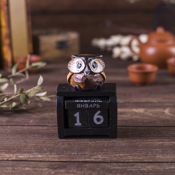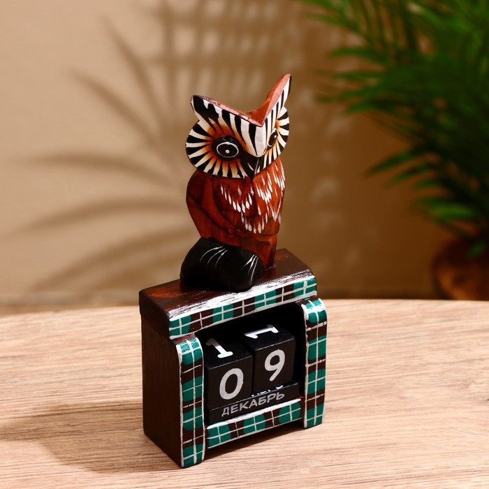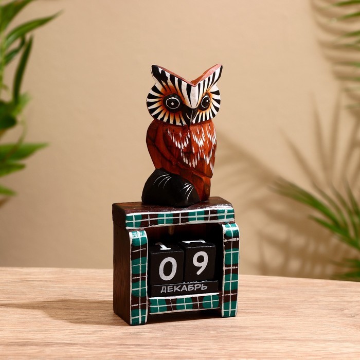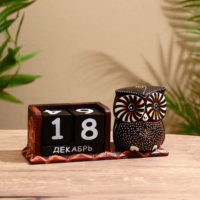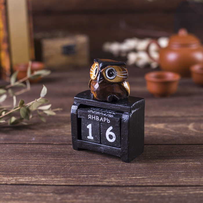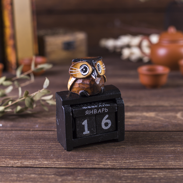 Вечный календарь настольный «Сова у камина», 9.5?4?17 см, дерево, МИКСВопросы по товару