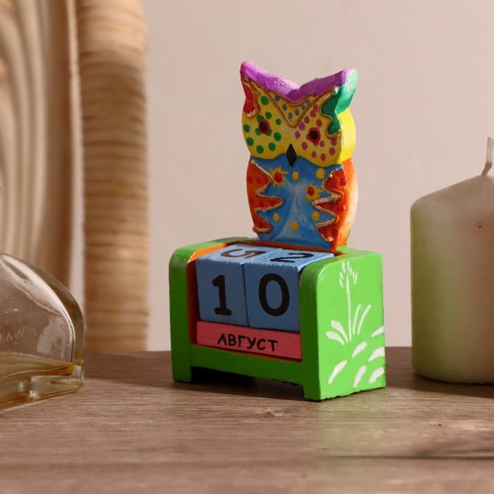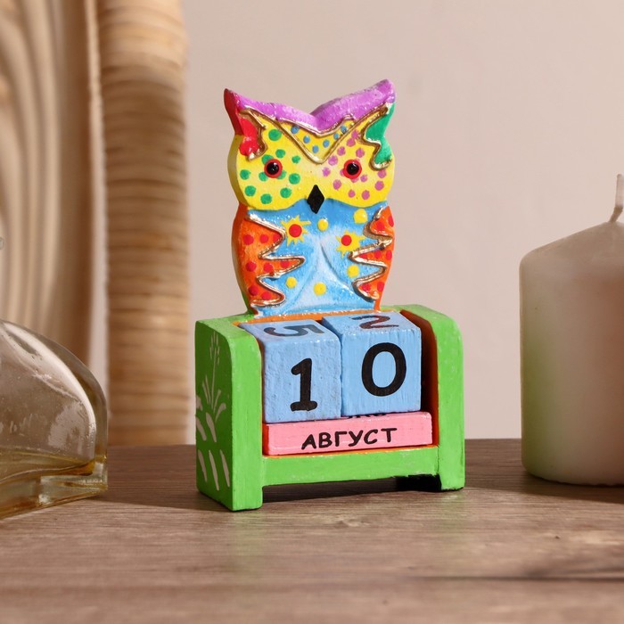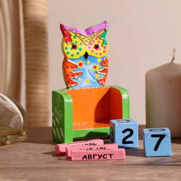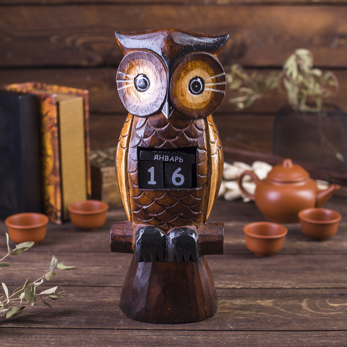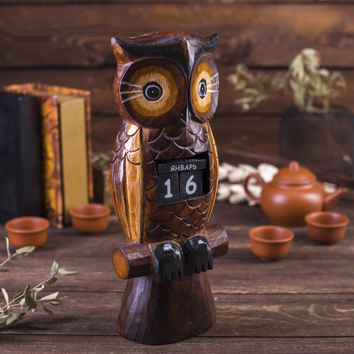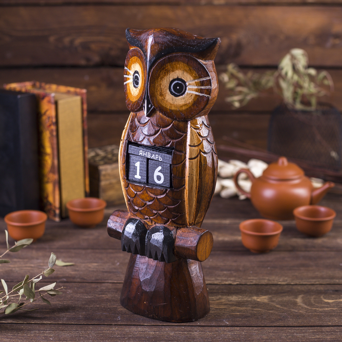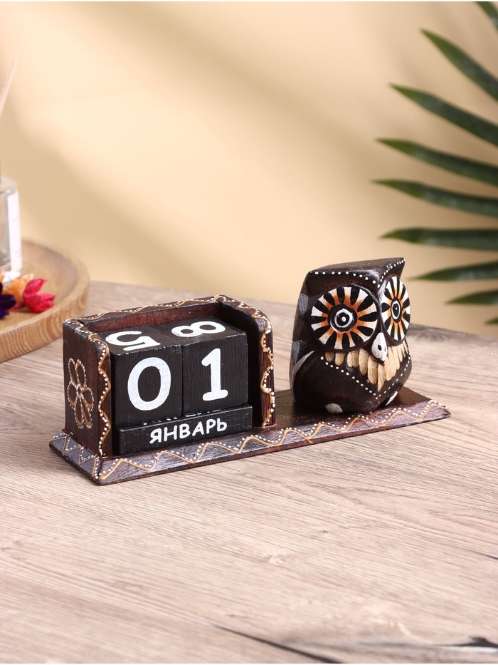 Вечный календарь настольный «Сова у камина», 9.5?4?17 см, дерево, МИКСВопросы по товару