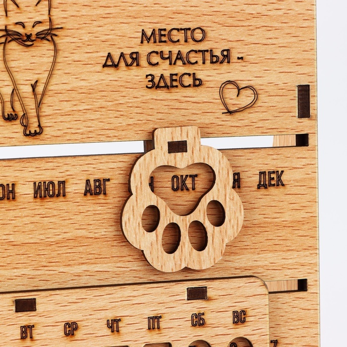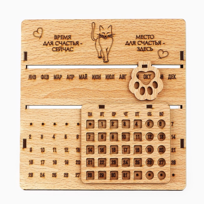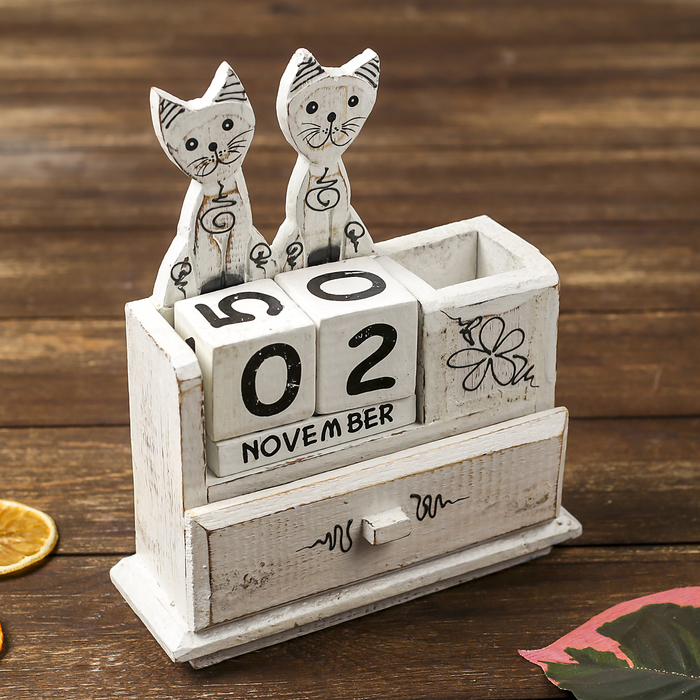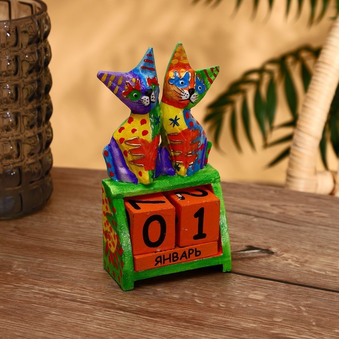 Вечный календарь настольный «Кошки», 6.5?28?15 см, деревоВопросы по товару