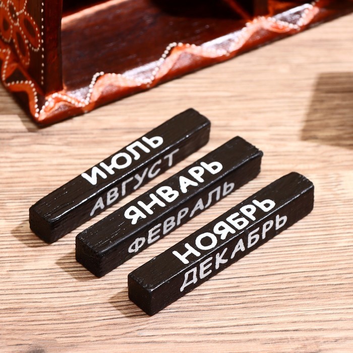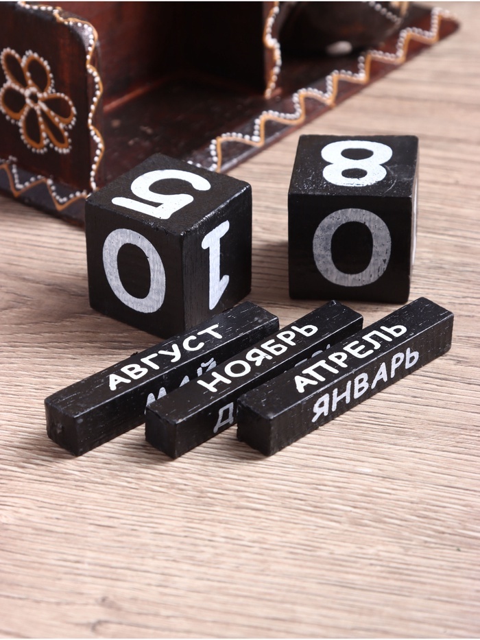 Вечный календарь с кубиками «Слоник», 11?4.5?6.6 см, дерево, МИКС - правда, необычный предмет? Это календарь, который будет служить Вам вечно, из года в год. Вместо того чтобы рвать листы, переставлят... Показать описаниеь окошечко в квартальнике, Вам просто нужно крутить кубики с числами и разворачивать полосочки-месяцы, и вуяля! Это не только весело, но и красиво, ведь это не просто календарь, а настоящий индонезийский сувенир. Дополнительно Дереву свойственно иссыхаться под воздействием перепадов температуры и влажности, в результате чего возникают трещины, которые не влияют на качество изделия. Изделия изготовлены вручную. Возможны неровности и непрокрашенные участки, а также небольшие отклонения от стандартных размеров и форм.