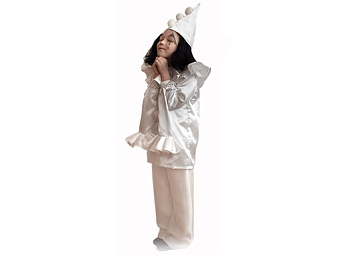 Карнавальный костюм "Пьеро"(блуза, брюки и шапочка из атласа) рост 110-116 С1769