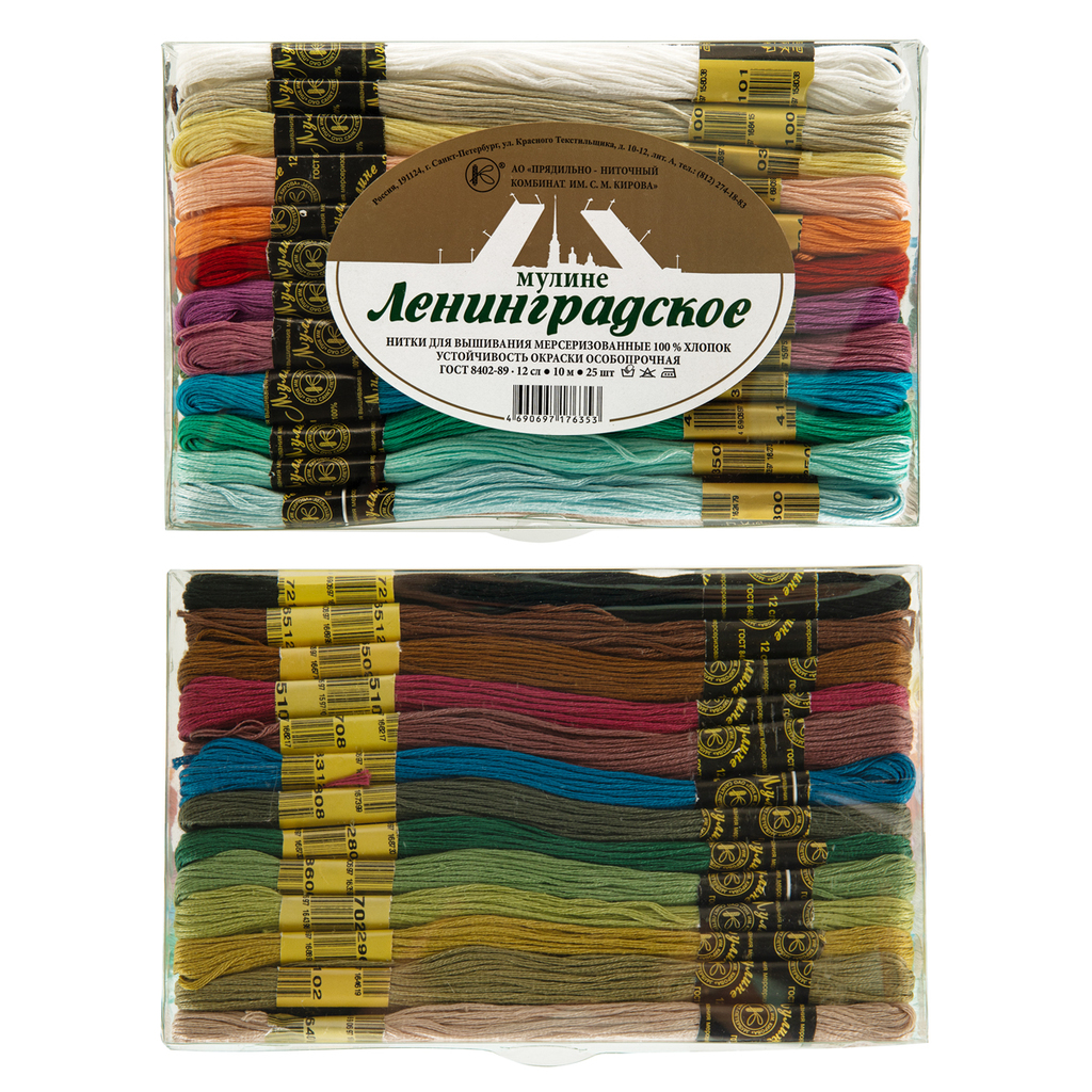 Нитки для вышивания "ПНК им. Кирова" мулине ассорти 100% хлопок 25 цв. x 10 м