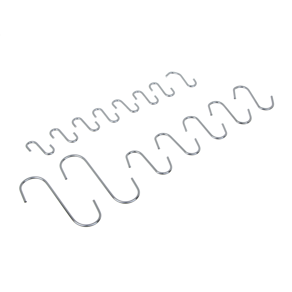 Крючки S-образные на кухонные рейлинги используются для хранения принадлежностей на рейлинге, штанге для полотенец, а также в шкафах и ящиках. Изделие имеет современный лаконичный дизайн и отлично впи... Показать описаниешется в интерьер помещения. В упаковке 15 штук разных размеров. Крючки изготовлены из качественной стали.