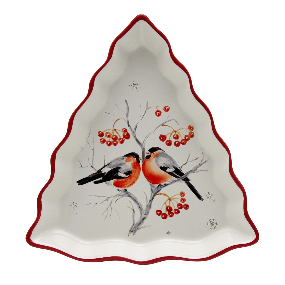 MILLIMI Снегири Блюдо в форме елки 21х16х3см, керамикаВопросы по товару