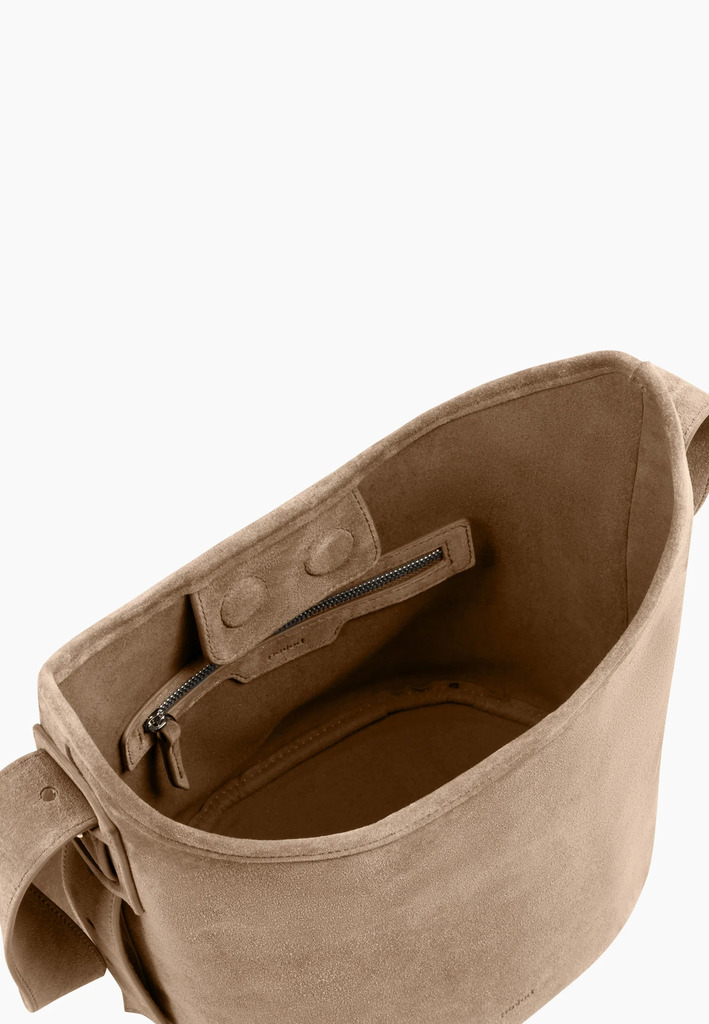 БРАК - небольшая полоса на замше. Небольшая, но вместительная сумка-ведро из мягкой бархатистой замши станет идеальным спутником для прогулок и расслабленных образов, добавит нотку непринужденности да... Показать описаниеже в повседневных рабочих образах или станет стильным акцентом на встрече с подругами. У сумки широкий регулируемый плечевой ремень, который позволяет носить её в руке, на плече или как кросс-боди, адаптируя под ваш образ и настроение. Модель закрывается на застежку со скрытыми магнитами, обеспечивая комфортный доступ к содержимому. Внутри вы найдете вместительное основное отделение и боковой карман на молнии для организации мелочей. В сумку легко поместятся смартфон, кошелек, футляр для очков, а благодаря плотному дну ключи или помада всегда будут под рукой.
