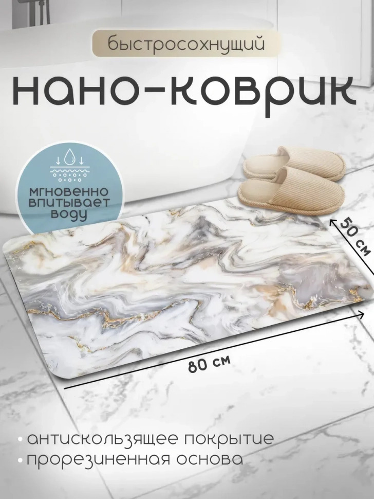 Диатомитовый коврик для ванной быстросохнущий 80x50 изготовлен из высококачественного диатомитового материала, он идеально подходит для использования в ванной благодаря своим уникальным свойствам. Диа... Показать описаниетомитовый коврик для ванной не только прекрасно впитывает влагу, но и обладает противоскользящим эффектом, обеспечивая вашу безопасность во время принятия ванны. Быстросохнущая структура коврика позволит вам наслаждаться свежестью и чистотой ванной комнаты каждый день. При этом, благодаря использованию диатомита, коврик не только эффективно удаляет влагу, но и предотвращает появление плесени и грибка, эффективно удаляет неприятные запахи. Размер 80 на 50 см.Погрешность ± 2-3 см является допустимым. Помимо ванной комнаты, этот ковер также подойдет как для прихожей так и для туалета, создавая чистоту и комфорт в любом помещении.