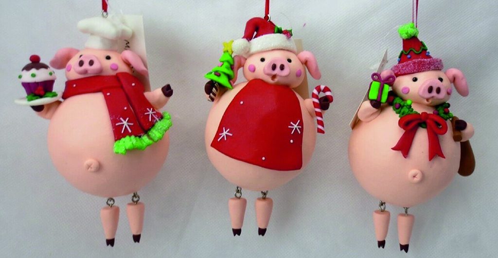 FM Елочное украшение Поросенок, 3 вида,  6.5*6.5*11.5 см.Цена за 1 шт.