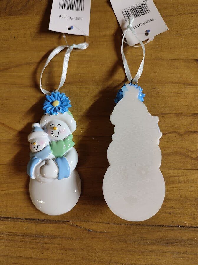 FM Елочное украшение Мама снеговик с малышом, полистоун, 10х4,5х2 см. Белый/голубой.FM Елочное украшение Мама снеговик с малышом, полистоун, 10х4,5х2 см. Белый/голубой.