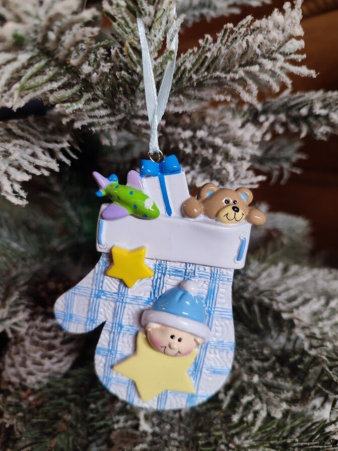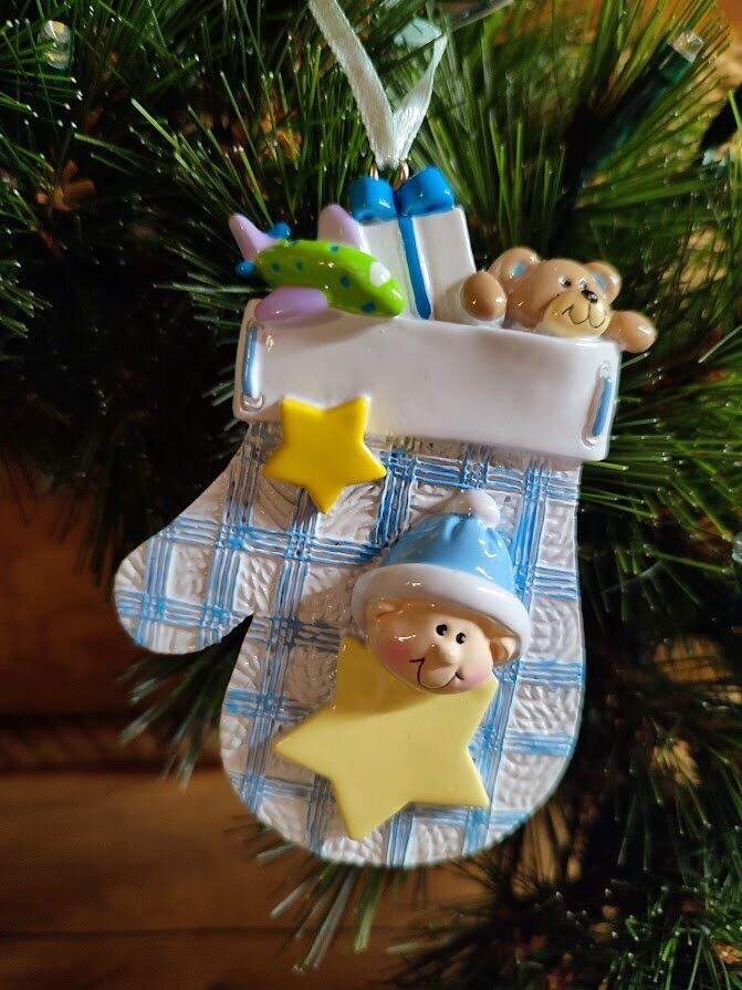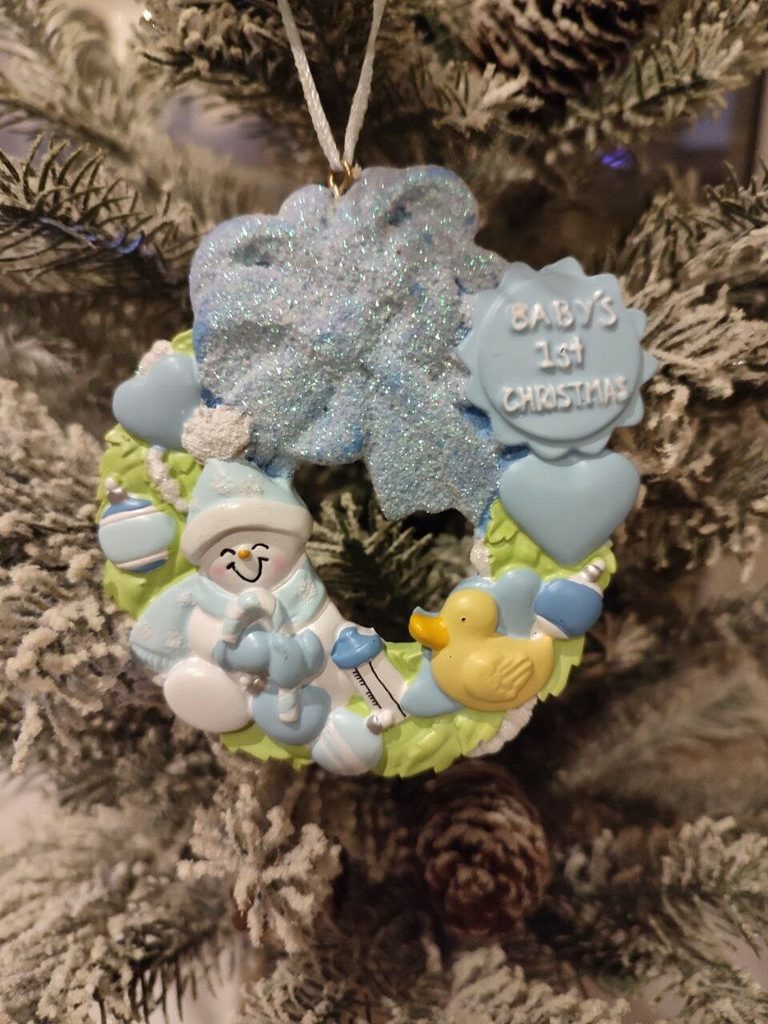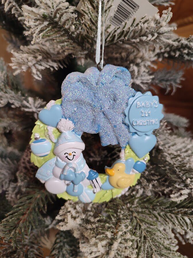 FM Елочное украшение Мое первое Рождество, полистоун, цвет голубой, 9x10x1 см. Вопросы по товару