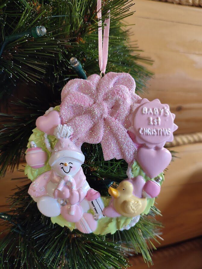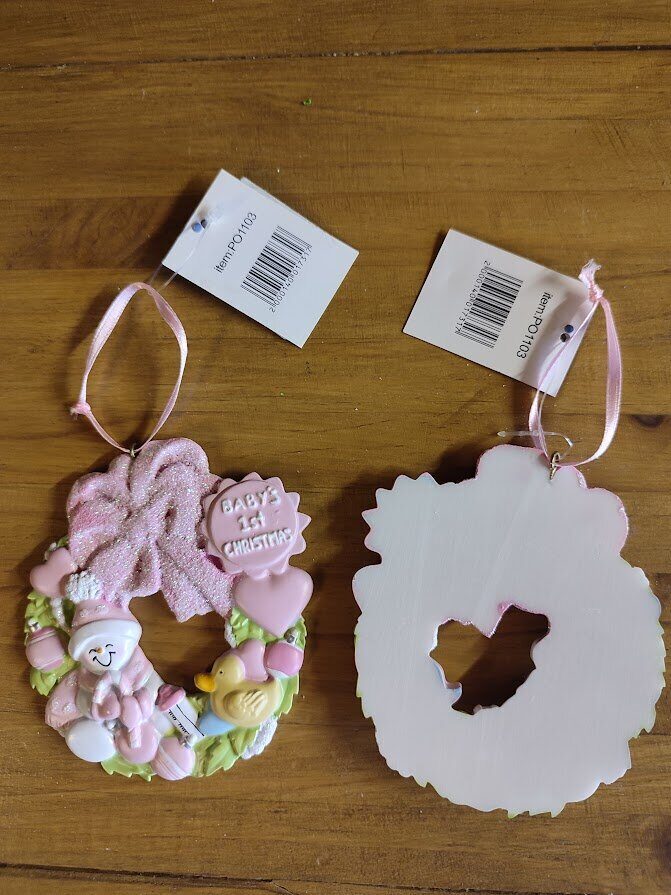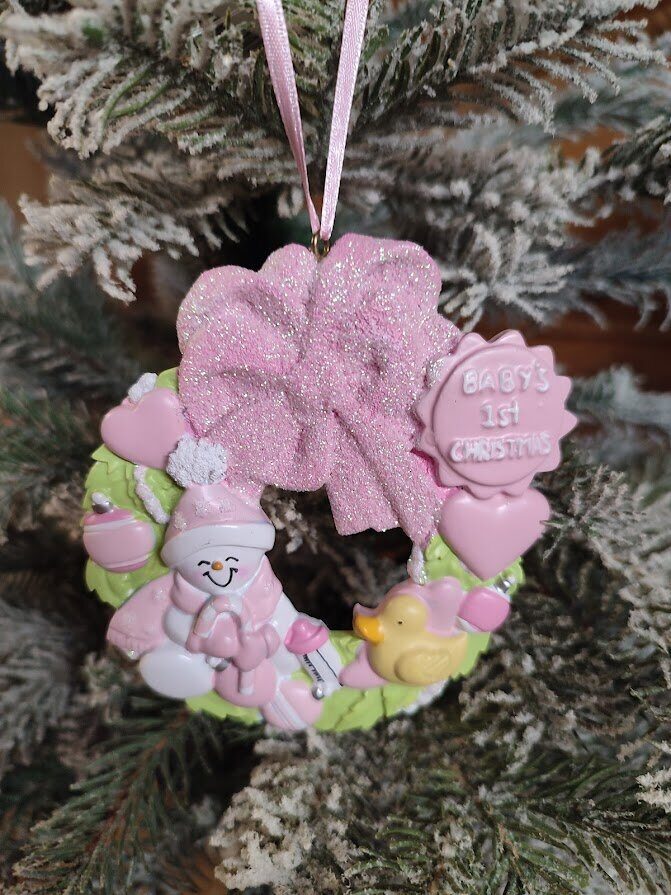 FM Елочное украшение Мое первое Рождество, розовый веночек, 9x10x1 см. Вопросы по товару
