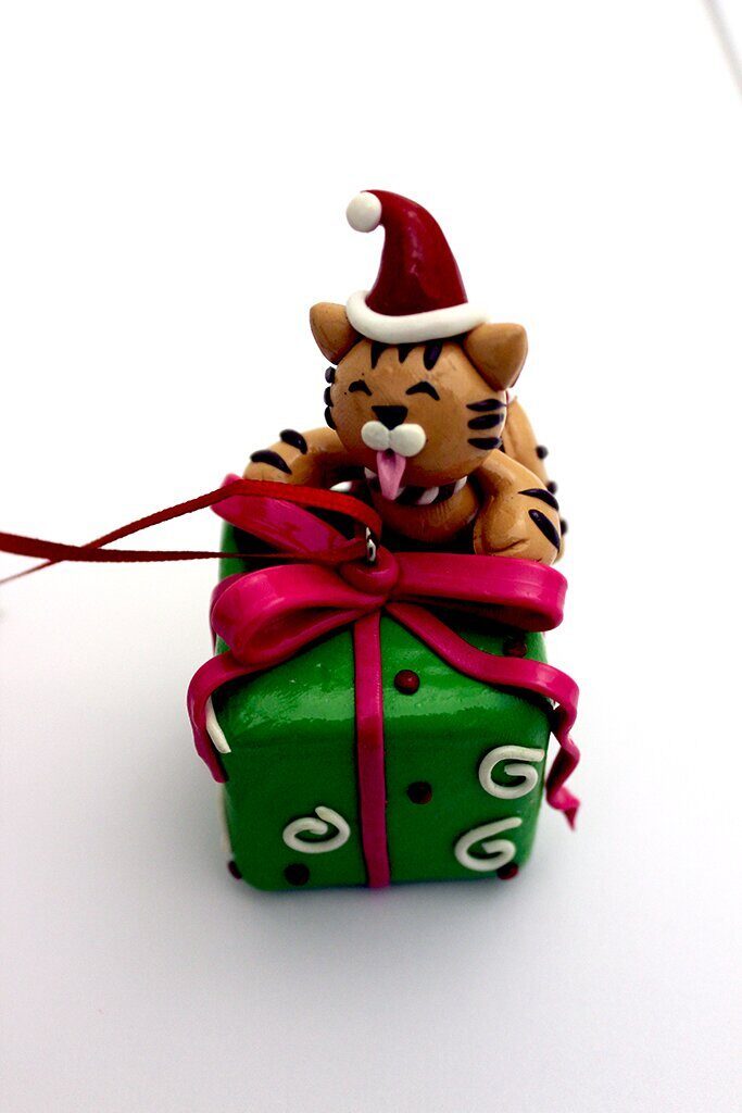 FM Елочное украшение Кошка с подарком.  6*4*8.5 см. Цена за 1 шт в асс.