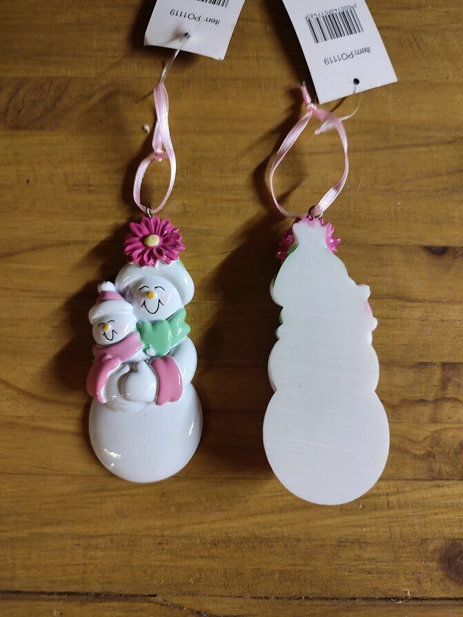 FM Елочное украшение Мама Снеговик с малышом, полистоун, 10х4,5х2 см.Белый / розовый.FM Елочное украшение Мама Снеговик с малышом, полистоун, 10х4,5х2 см.Белый / розовый.