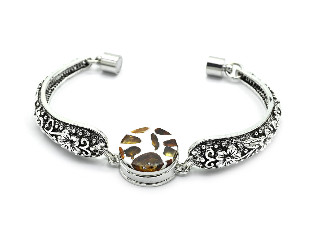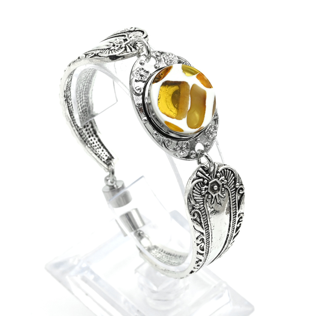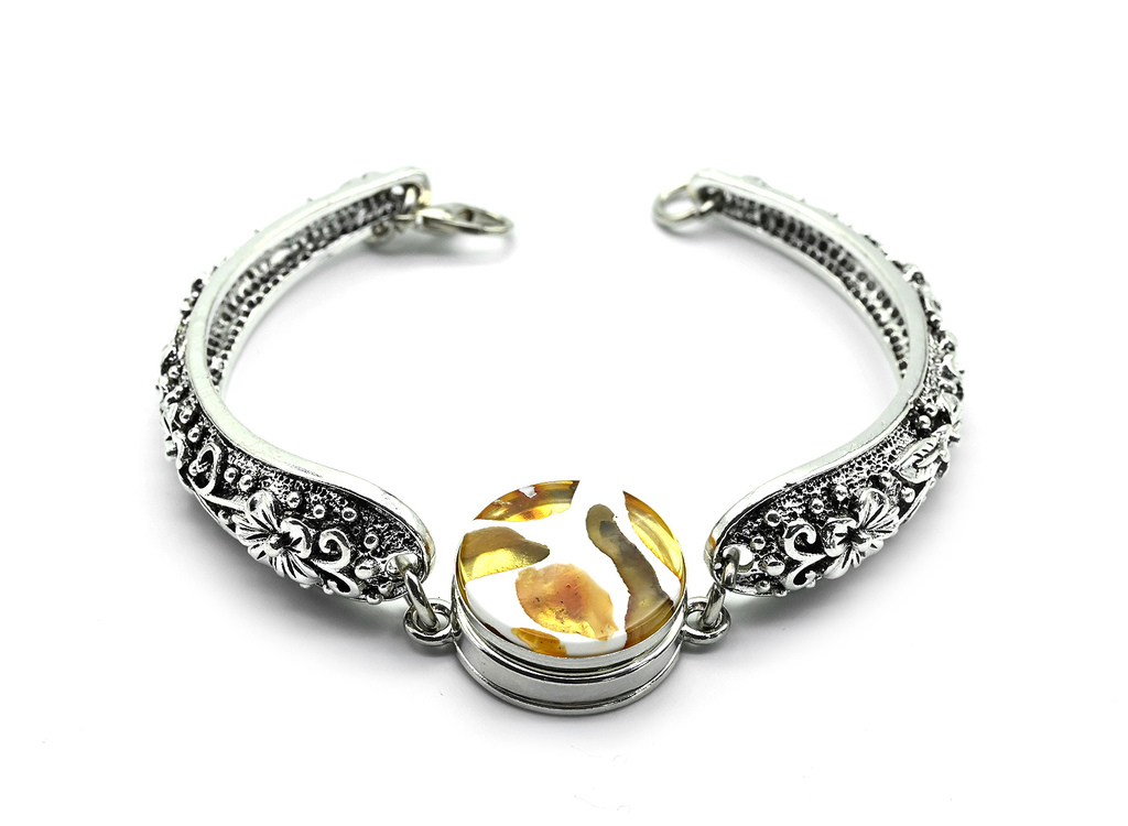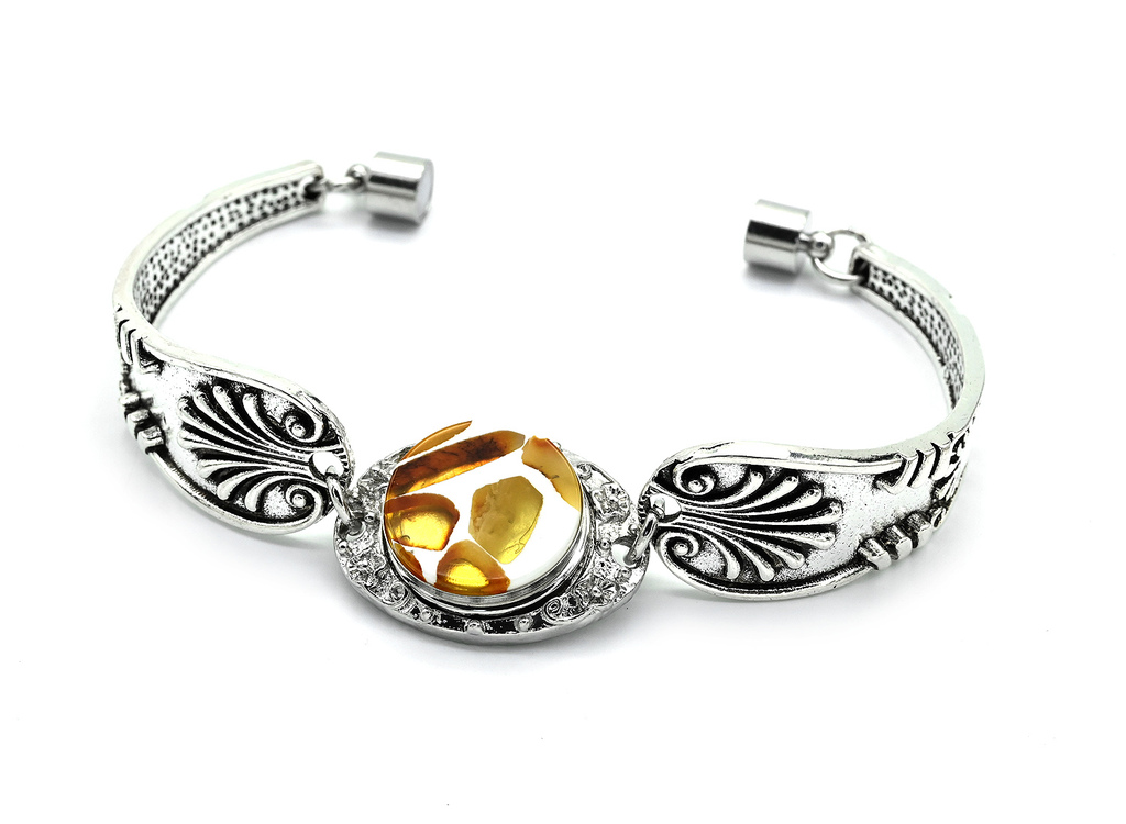 Браслет из ювелирного сплава с янтарной вставкой мозаика круг 18мм, 17смВопросы по товару