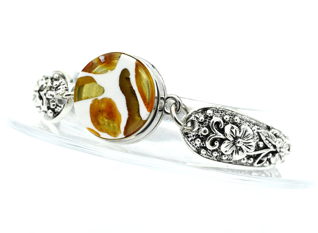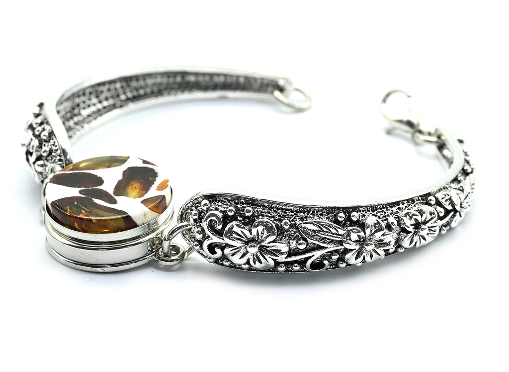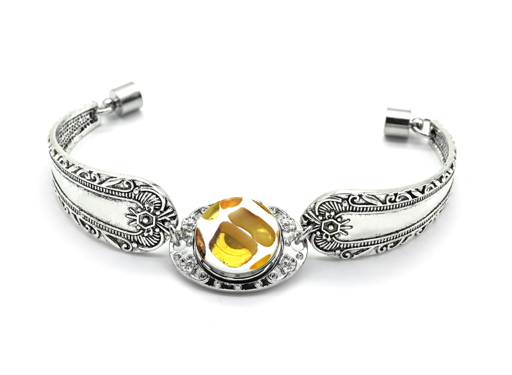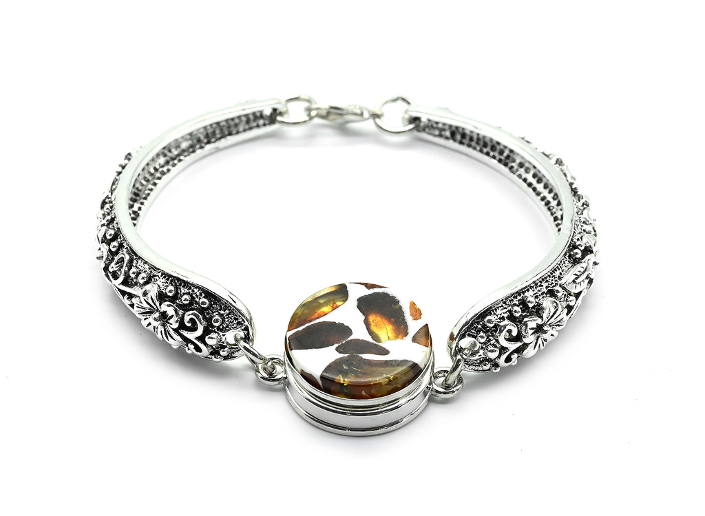 Браслет из ювелирного сплава с янтарной вставкой мозаика круг 18мм, 17смВопросы по товару