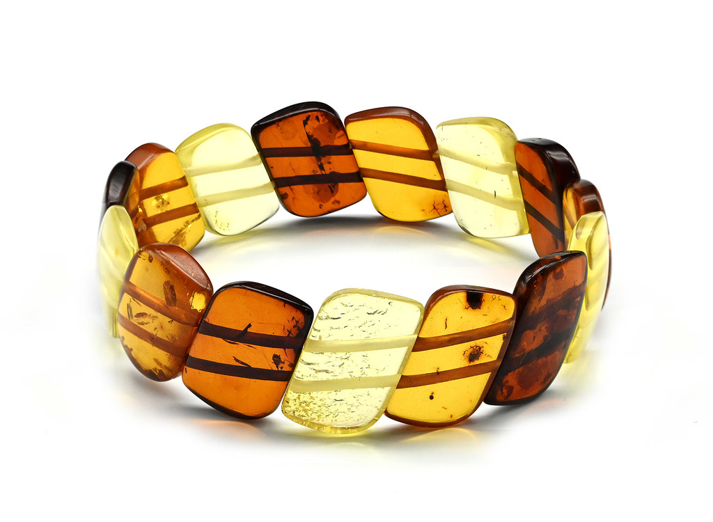 Браслет из натурального янтаря сегмент 12*12мм цв.лимонный, св.коньячный, коньячный, 10,7г, 16смВопросы по товару