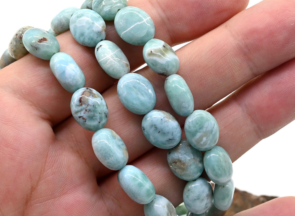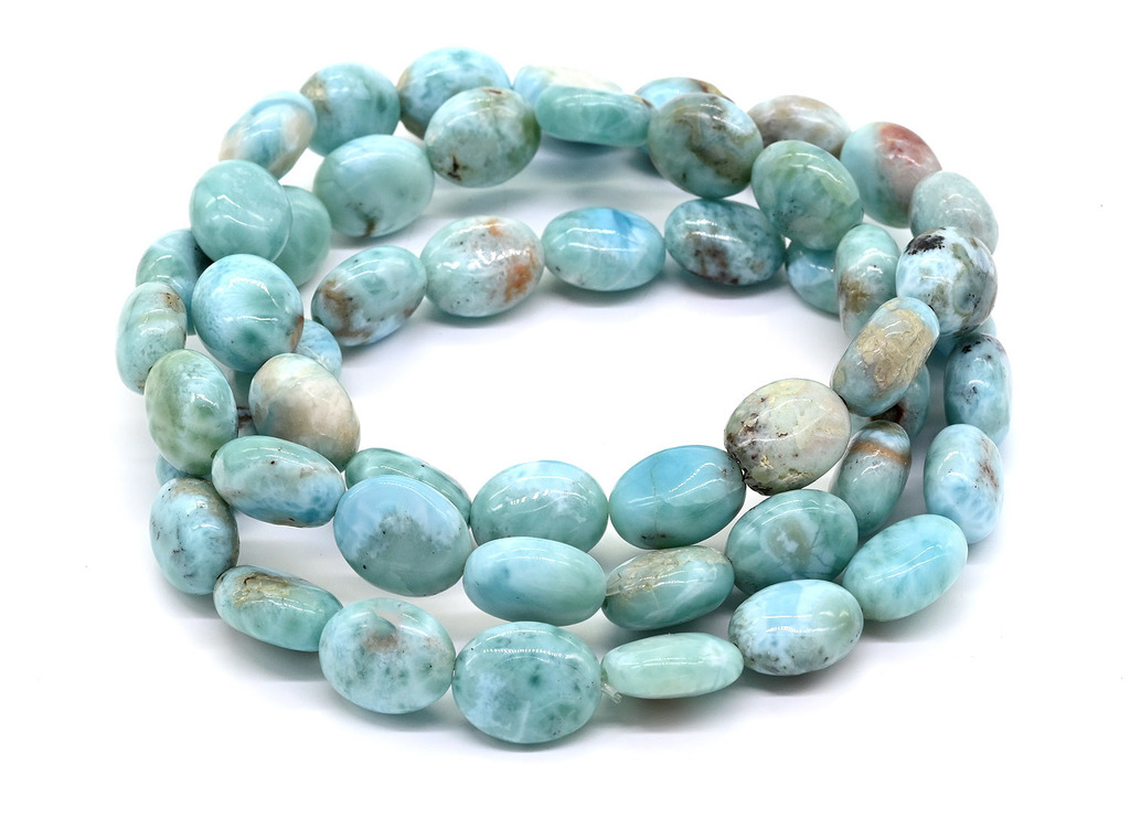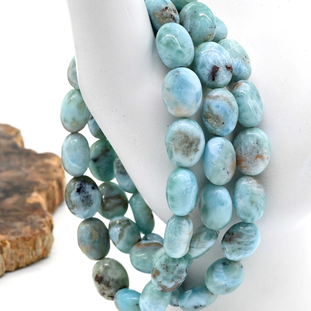 Материал: Ларимар Натуральность: Натуральный камень Месторождение: Доминиканская республика Основание: Камень •На поверхности камня допустимо присутствие естественных природных прожилок и микротрещин.... Показать описание •Длина браслета 18-19см. •Браслет на резинке.