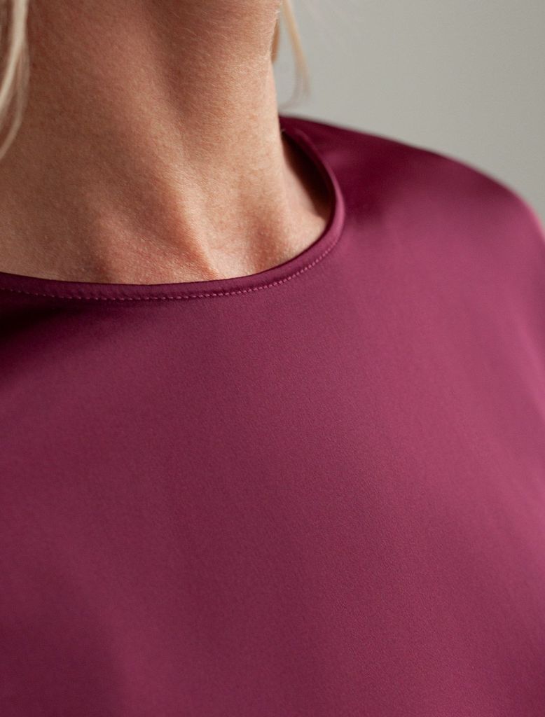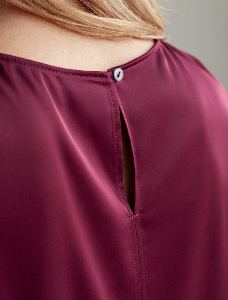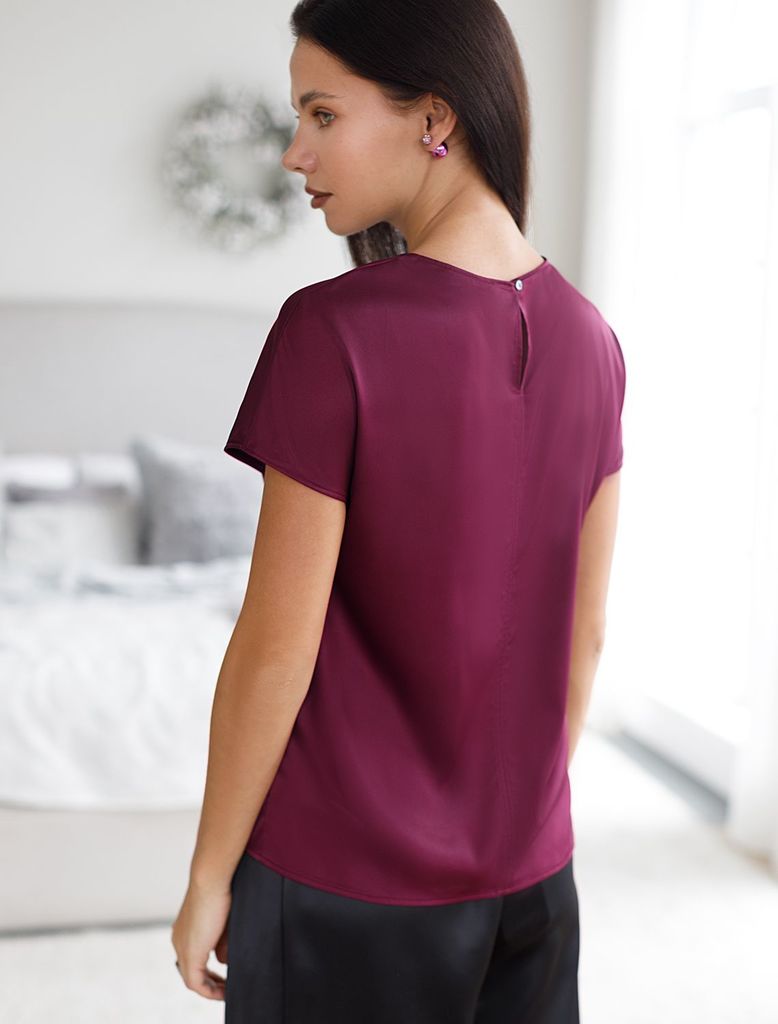 Состав: 94%ПЭ 6%ПУ Плотность: 107 Г/м2 Параметры модели на первом фото: Рост 170, бюст 89, талия 63, бедра 92 Размер товара на первом фото: 42 Стильная блузка винного цвета из сатина с удобной за... Показать описаниестежкой на пуговицу на спинке. Прямой крой и короткий рукав делают модель универсальной для любого сезона. Благородный блеск ткани подчеркивает элегантность, а удобная посадка обеспечивает комфорт. Благодаря эластану в составе ткань сохраняет первозданный вид, не образуя заломов. Ваш образ будет безупречен весь день! Блузка легко комбинируется с деловой одеждой и casual-вещами, подходит для разных случаев.