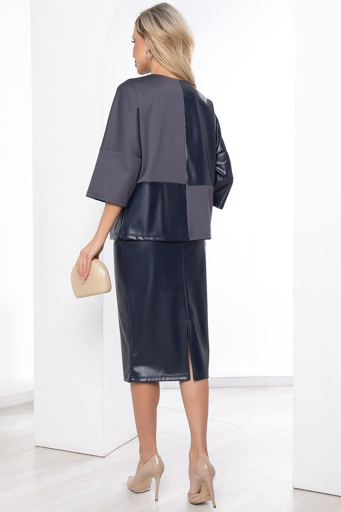 Артикул: Б8820. Ткань: трикотаж, экокожа. Состав: 98% п/э, 2% эластан. Цвет: синий. Вид застежки: без застёжки. Силуэт: прямой. Карманы: отсутствуют. Тип горловины: лодочка. Длина изделия по... Показать описание спинке: 44/ 57 см, 46/ 58 см, 48/ 59 см, 50/ 60 см, 52/ 61 см, 54/ 62 см. Рост модели: 168 см. Универсальная модель джемпера, которая прекрасно подойдёт для дерзких повседневных образов. Рукав три четверти, свободный, со спущенным плечевым швом. Изделие будет отлично смотреться с юбками, брюками и лосинами. Создавай модные образы и чувствуй себя уверенно! Уход за изделием: ручная стирка до 30 градусов; нельзя отбеливать; деликатный отжим; гладить при t не более 110 С; гладить с изнанки. *Допуск отклонения длины при массовом производстве 1-3 см является нормой.