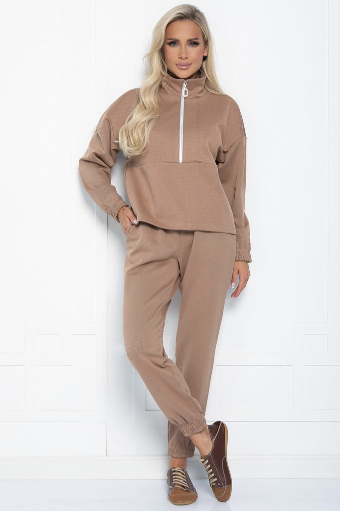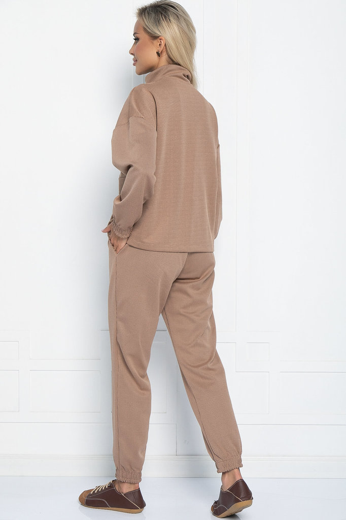 Артикул: К11097. Состав: 95% полиэстер, 5% эластан. Материал: костюмная. Цвет: кофейный. Принт: гусиная лапка мелкая. Вид застежки: молния. Карманы: есть. Силуэт: свободный. Декоративны... Показать описаниее элементы: отсутствуют. Длина верха: 44/ 57,5 см, 46/ 57,5 см, 48/ 59,7 см, 50/ 59,7 см. Длина рукава: 44/ 71 см, 46/ 72 см, 48/ 73 см, 50/ 74 см. Длина брюк: 44/ 97,5 см, 46/ 97,5 см, 48/ 98,5 см, 50/ 98,5 см. Размер изделия на модели: 44. Рост модели: 168 см. Повседневный костюм в стиле спорт-шик. Воротник-стойка, удобный спущенный рукав на резинке. Молния расстёгивается до груди, поэтому вы можете регулировать степень открытости груди. Брюки на эластичной манжете, чтобы можно было регулировать их длину. Есть брючные карманы. Уход за изделием: ручная стирка до 30 градусов; нельзя отбеливать; отжим запрещён; гладить при t не более 110 С; гладить с изнанки. Внимание! Рекомендуем ориентироваться на размерную сетку и выбирать свой привычный размер, согласно размерной таблице. *Допуск отклонения длины при массовом производстве 1-3 см является нормой.