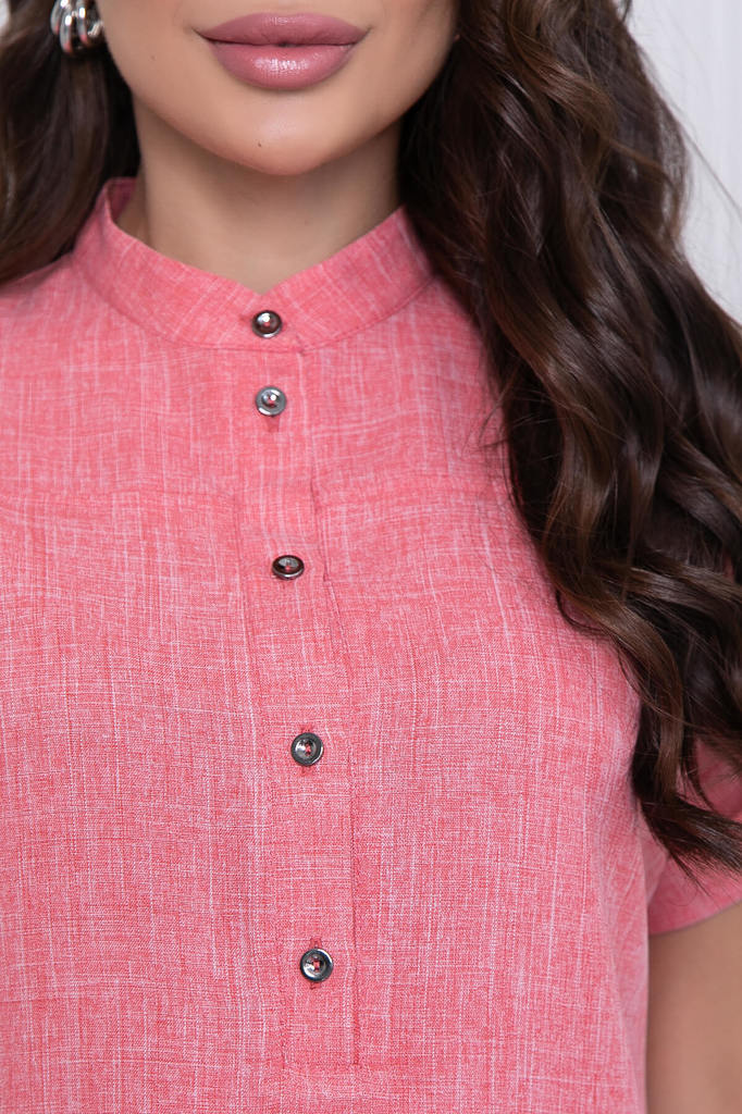 Артикул: П7079. Ткань: тайваньский лён. Состав: 65% п/э, 30% вискоза, 5% эластан. Цвет: коралловый. Вид застежки: пуговицы. Силуэт: полуприлегающий. Карманы: отсутствуют. Тип горловины: ... Показать описание;воротник-стойка. Длина изделия по спинке: 44/ 101 см, 46/ 102 см, 48/ 103 см, 50/ 104 см, 52/ 105 см. Рост модели: 167 см. Платье на каждый день с акцентным поясом практично и неприхотливо к выбору аксессуаров. Можно сочетать с туфлями на каблуке или кедами. Платье прямого кроя, горловина оформлена стойкой, по переду застёгивается на функциональные пуговицы. Рукав цельнокроеный, короткий, с отворотом. По низу платья по бокам есть разрезы. В комплекте пояс с металлической пряжкой. Уход за изделием: бережная стирка до 30 градусов; нельзя отбеливать; деликатный отжим; гладить при t не более 110С; гладить с изнанки. *Допуск отклонения длины при массовом производстве 1-3 см является нормой.