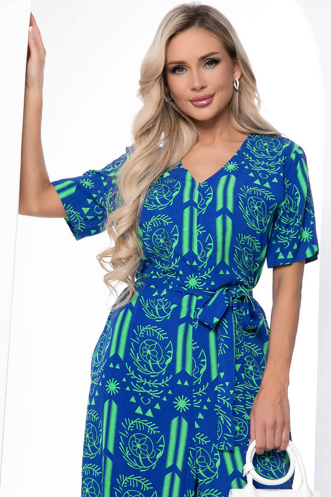 Артикул: К8778. Ткань: штапель. Состав: 50% хлопок, 50% вискоза. Цвет: электрик. Вид застежки: потайная молния на груди. Силуэт: свободный. Карманы: есть. Длина изделия комбинезон по спинке:... Показать описание 44-54/ 158 см. Рост модели: 168 см. Яркий комбинезон из лёгкой ткани идеально подойдёт для повседневного расслабленного образа. Свободный крой не сковывает движений и дарит комфорт. Рукав втачной, короткий. Акцент образу придает вырез, который идеально подчеркивает зону декольте. В таком комбинезоне вы точно не останетесь незамеченной! Внимание! Ткань усаживается по длине после стирки. Поэтому рекомендуется перед тем, как подшить изделие, предварительно его постирать. Уход за изделием: ручная стирка до 30 градусов; нельзя отбеливать; деликатный отжим; гладить при t не более 110 С; гладить с изнанки. *Допуск отклонения длины при массовом производстве 1-3 см является нормой.