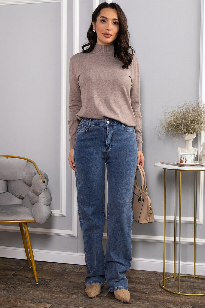 Состав : 95% хлопок, 5% эластан Материал : джинс-стрейч Цвет : синий Принт : отсутствует Карманы : есть Резинка в поясе : нет Вид застежки : молния и пуговица Декоративные элементы : нет Длина готовог... Показать описаниео изделия по внутреннему шву : 46-77 см, 48-77 см, 50-77 см, 52-77 см, 54-78 см Длина готового изделия по боковому шву : 46-109 см, 48-110 см, 50-110 см, 52-110 см, 54-112 см Отснято с водолазкой Б14569-20М Синие женские джинсы прямого кроя представляют собой воплощение элегантности и классики. Модель с приталенным силуэтом и классическим поясом со шлёвками для ремня выгодно подчёркивает фигуру. Прямой крой и наличие передних и задних карманов обеспечивают комфорт и функциональность. Это идеальный выбор для тех, кто предпочитает сочетать классику с современными трендами. Внимание! Рекомендуем ориентироваться на размерную сетку и выбирать свой привычный размер, согласно размерной таблице. *Допуск отклонения длины при массовом производстве 1-3 см является нормой. Уход за изделием: Ручная стирка или стирка в машине при температуре до 30 °C, деликатный режим. Не использовать отбеливатели. Разрешена глажка при температуре до 110 °C. При глажке использовать специальную насадку на подошве утюга, гладить с паром. Не замачивать и не выжимать. Стирать изделие наизнанку, отдельно от других вещей.