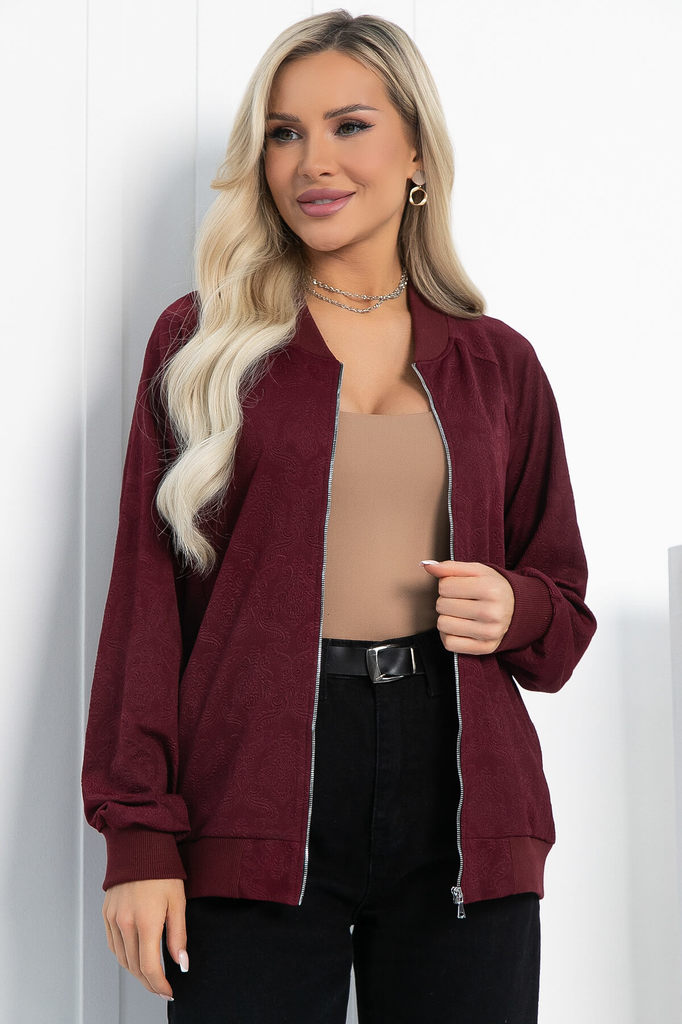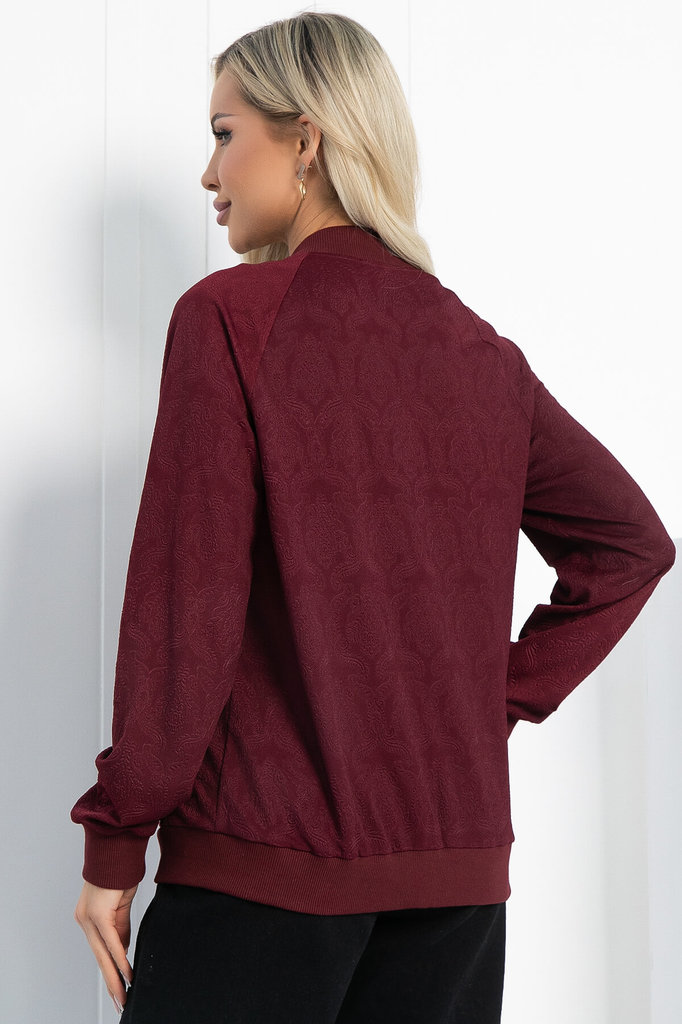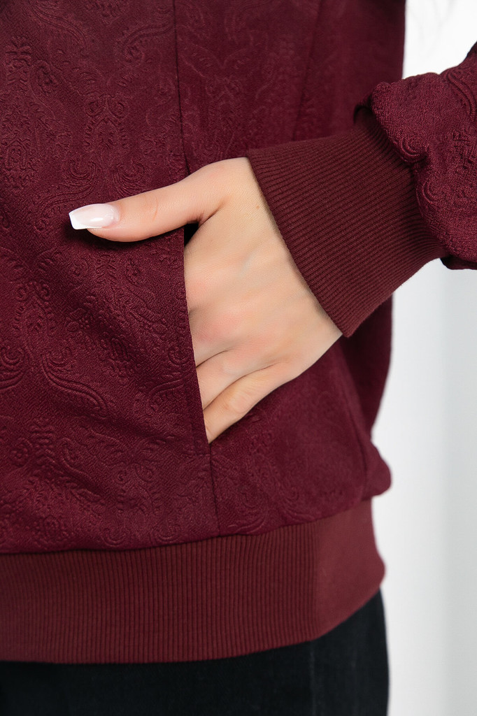 Артикул: Б12776-41М. Тип ткани: смесовый. Состав: 65% полиэстер, 30% вискоза, 5% эластан. Материал: трикотаж. Цвет: бордовый. Принт: вензеля. Вид застежки: молния. Силуэт: свободный. Ка... Показать описаниерманы: есть. Подкладка: отсутствует. Декоративные элементы: отсутствуют. Длина по спинке от верхней точки плеча: 46/ 65 см, 48/ 66 см, 50/ 67 см, 52/ 68 см, 54/ 70 см. Размер изделия на модели: 44 Рост модели: 168 см. Удобный бомбер на молнии, выполненный из трикотажа с необычным принтом, никого не оставит равнодушным! Идеально подходит для летних прогулок, а также для поздней весны и ранней осени. Воротник и манжеты выполнены из кашкорсе. Бомбер отлично можно сочетаться с джинсами и кроссовками, для пробежки со спортивными штанами или лосинами. Уход за изделием: ручная стирка до 30 градусов; нельзя отбеливать; отжим запрещён; гладить при t не более 110 С; гладить с изнанки. Внимание! Рекомендуем ориентироваться на размерную сетку и выбирать свой привычный размер, согласно размерной таблице. *Допуск отклонения длины при массовом производстве 1-3 см является нормой.