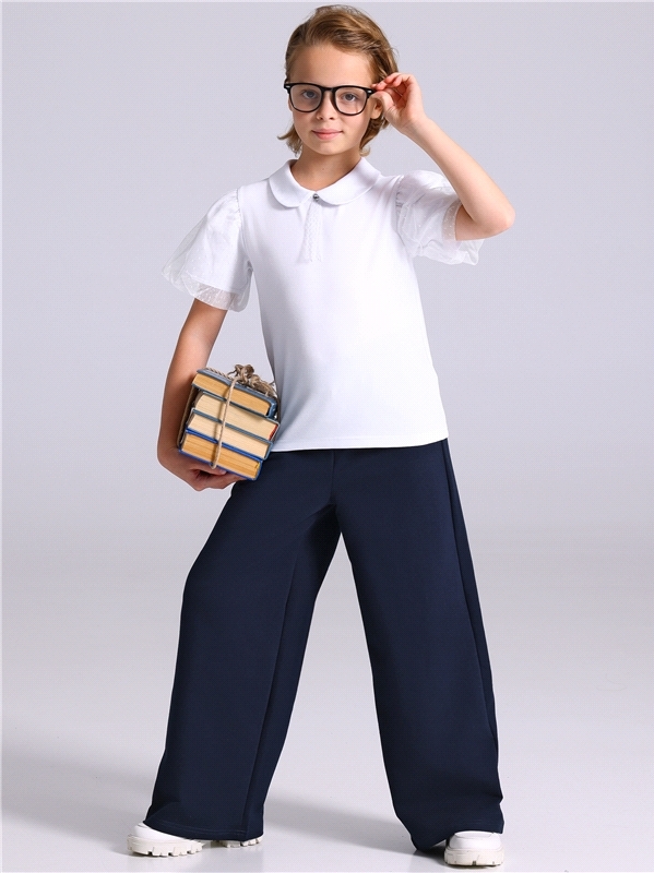 Блузка для девочки выполнена из кулира - легкого хлопкового полотна с лайкрой. Изделие с короткими присборенными рукавами на манжетах и застежкой на пуговку по спинке, украшено нежным кружевным воротн... Показать описаниеичком. Отличный вариант для школы! Уход: только машинная стирка (руками не стирать!) при температуре 40 градусов, без предварительного замачивания. Состав: кулир с лайкрой / хлопок 92% + лайкра 8%.