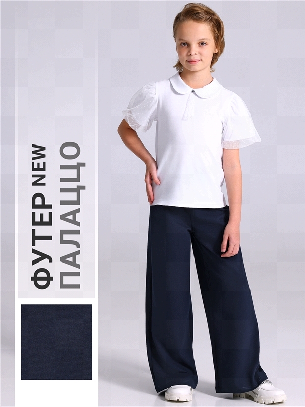Широкие брюки палаццо для девочек выполнены из футера – плотного хлопкового полотна с лайкрой. Изделие без карманов на удобном эластичном поясе. Отличный вариант для школы и не только! Уход: только ма... Показать описаниешинная стирка (руками не стирать!) при температуре 40 градусов, без предварительного замачивания. Состав: футер / хлопок 95% + лайкра 5%.