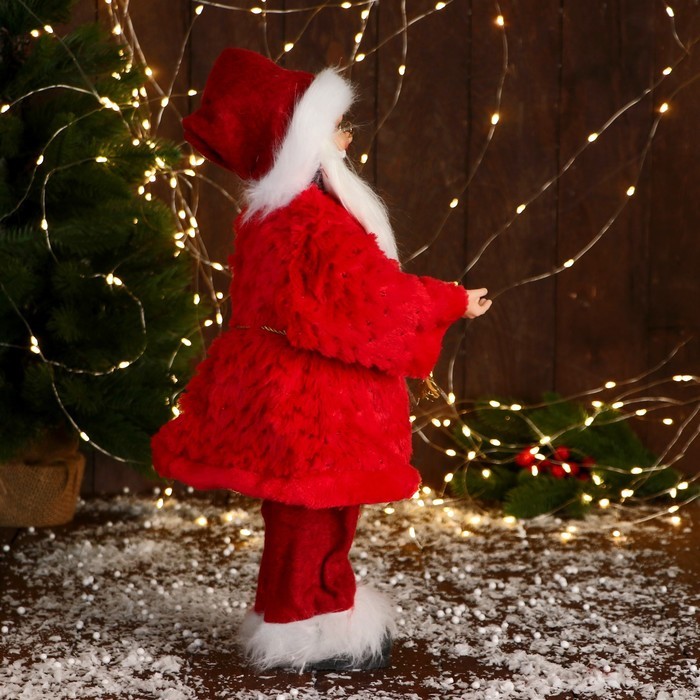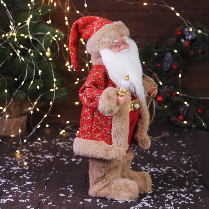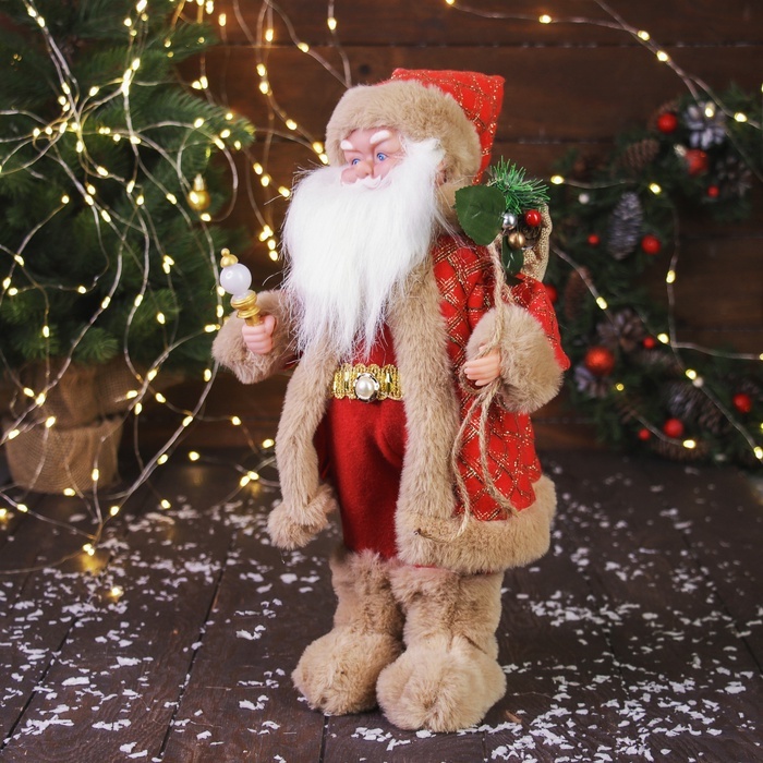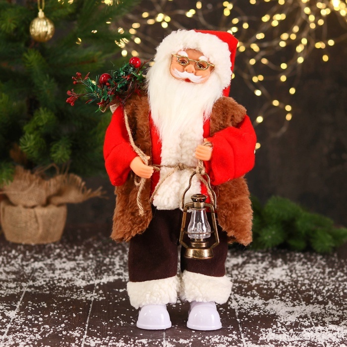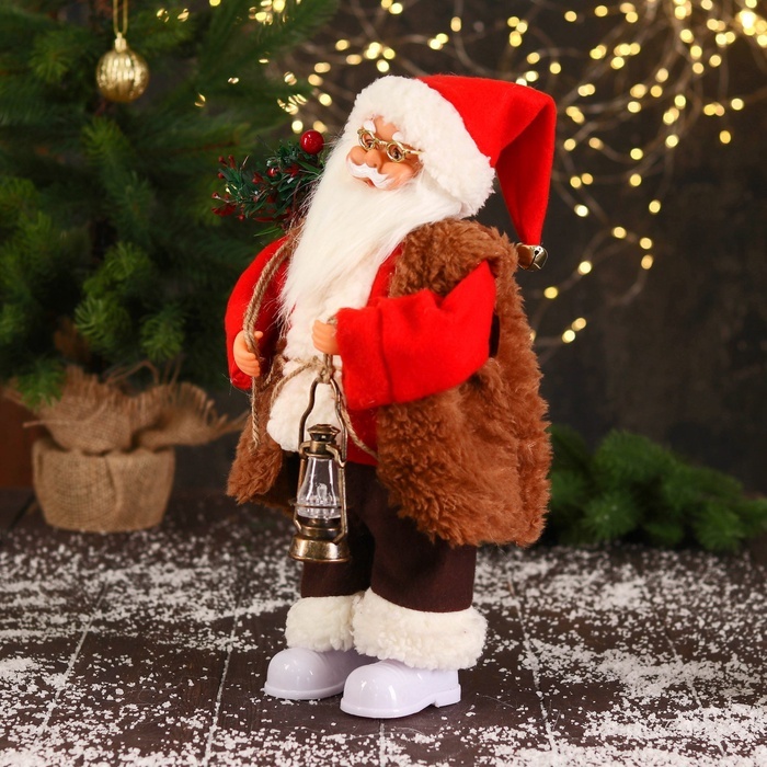 Дед Мороз под ёлку «Зимнее волшебство. В красном тулупе, с фонариком» двигается, ботинки светятся, 35 см Вопросы по товару