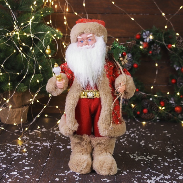 Дед Мороз под ёлку «Зимнее волшебство. В красной шубке в клетку с подарками» двигается, 40 смДед Мороз под ёлку «Зимнее волшебство. В красной шубке в клетку с подарками» двигается, 40 смДед Мороз под ёлку «Зимнее волшебство. В красной шубке в клетку с подарками» двигается, 40 см