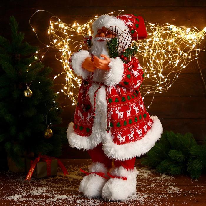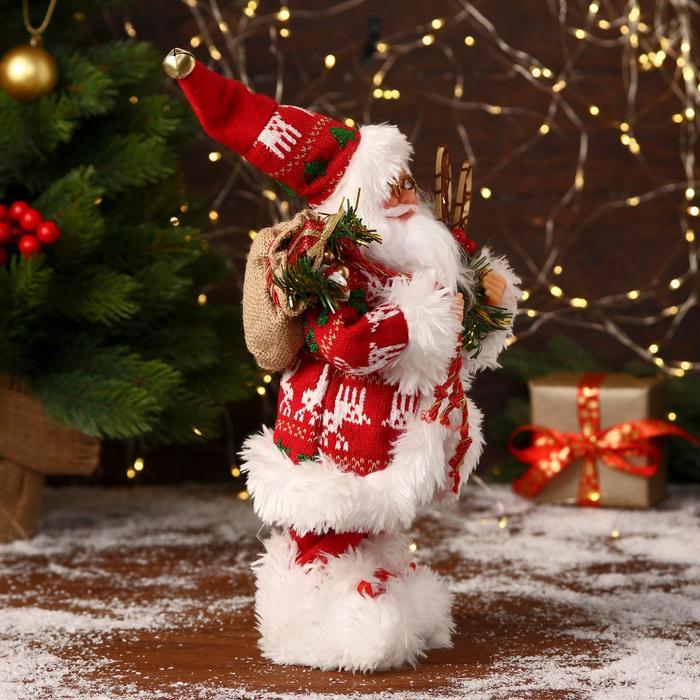 Дед Мороз под ёлку «Зимнее волшебство. В красной шубке с оленями», 60 см