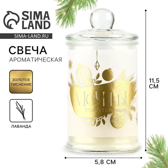 Ароматическая свеча новогодняя в банке «Мечты сбудутся», лаванда, 11.5?5.8 см Вопросы по товару