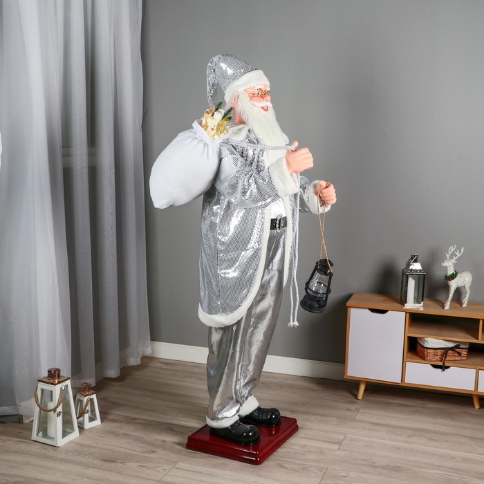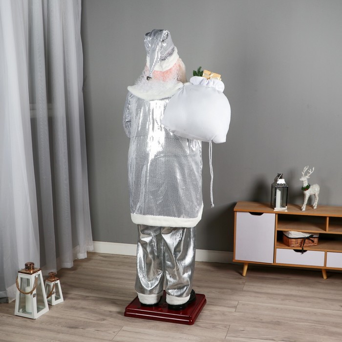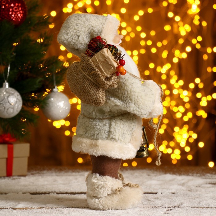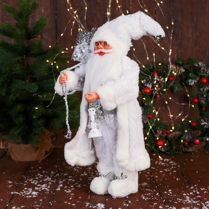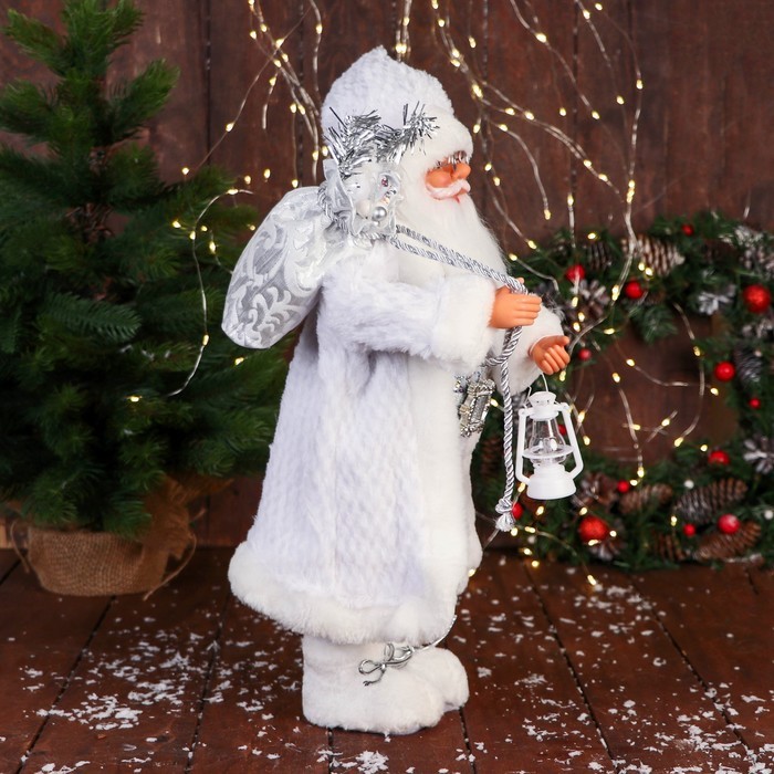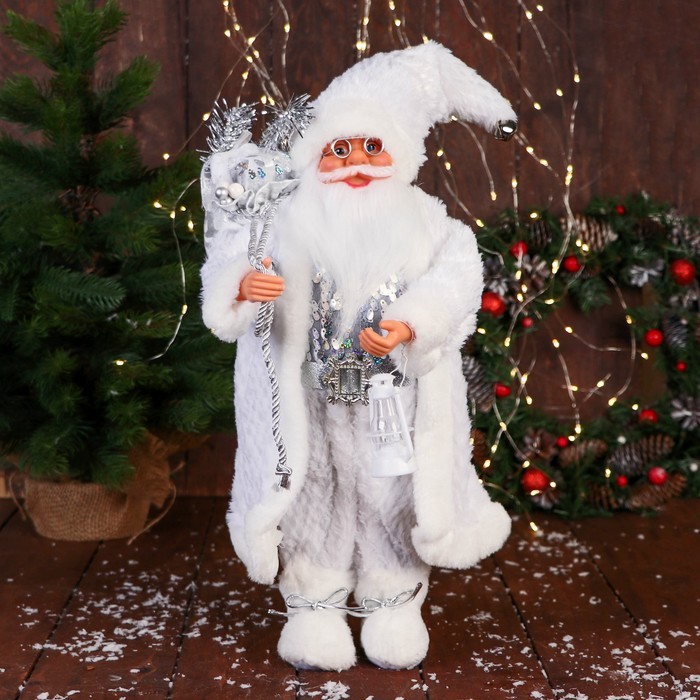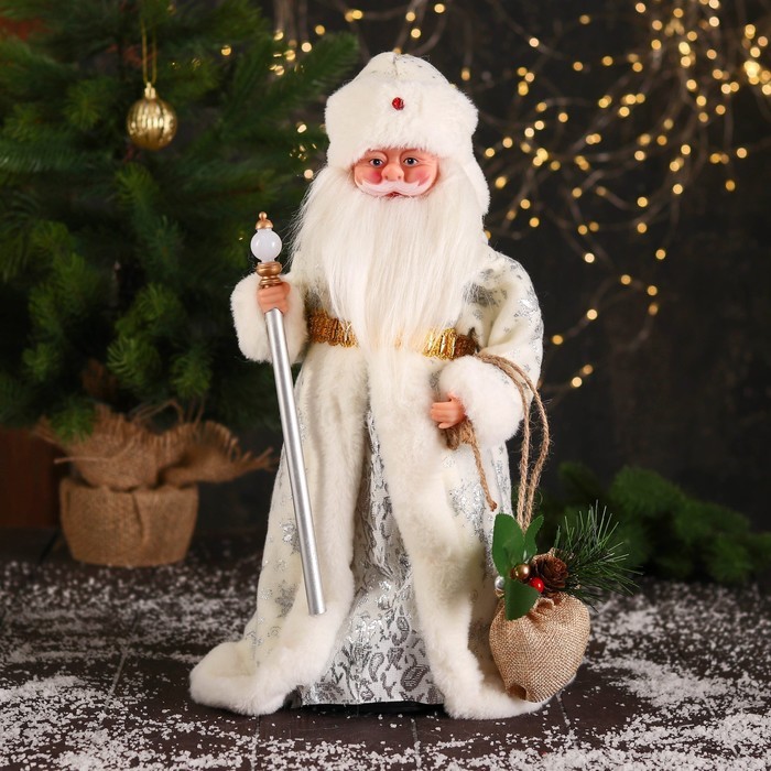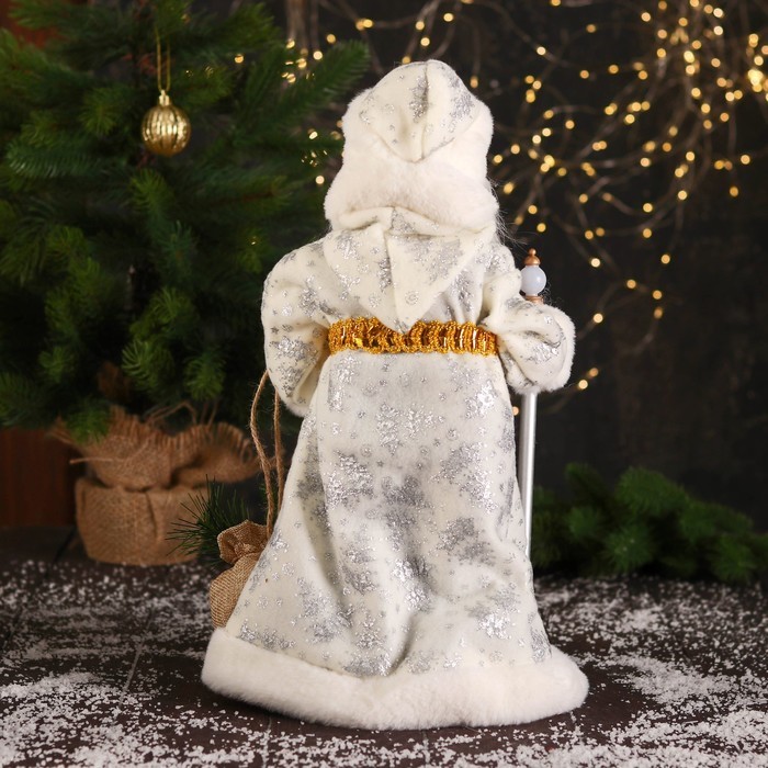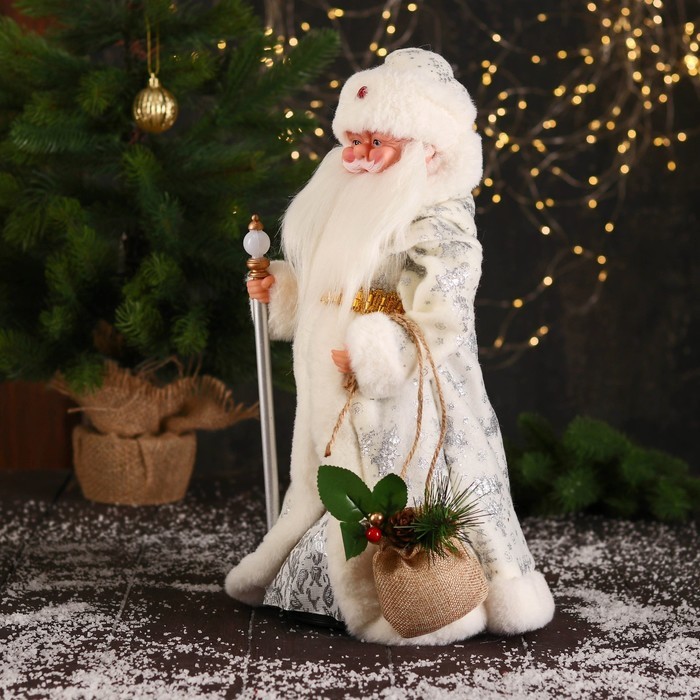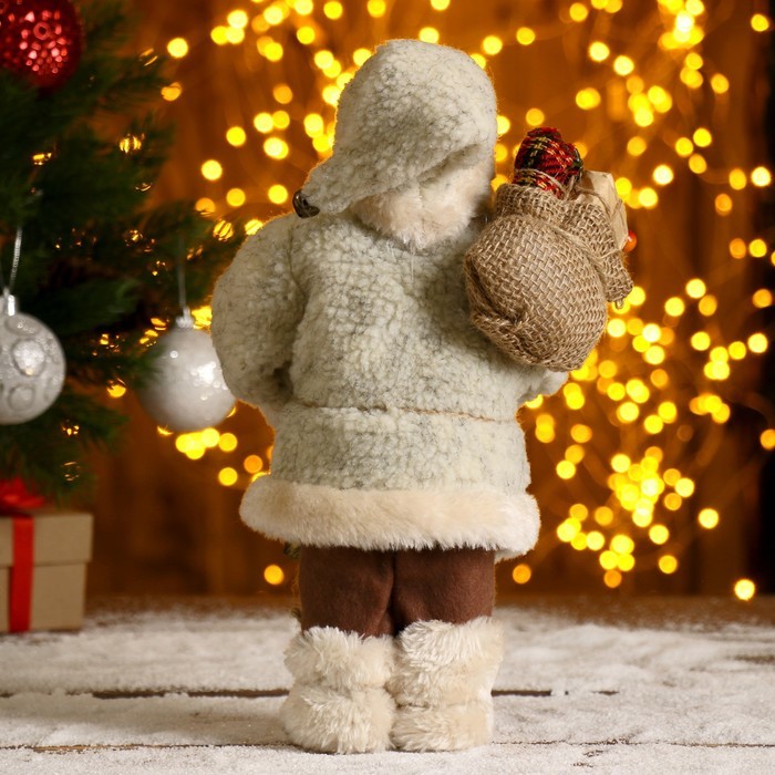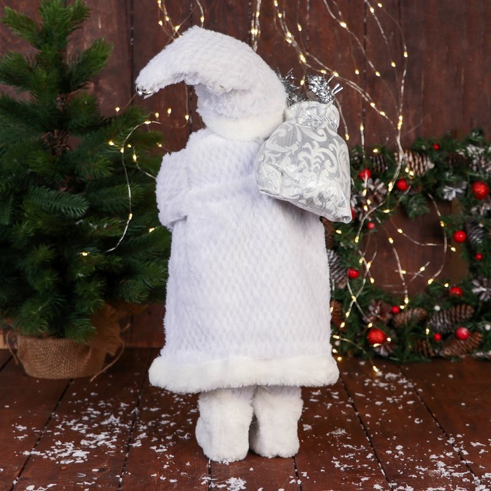 Дед Мороз под ёлку «Зимнее волшебство. В пушистой шубе, с мешком» двигается, 40 см, белый Вопросы по товару