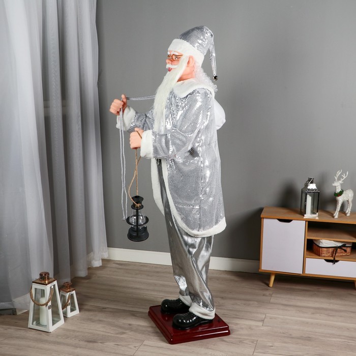 Фигура Деда Мороза высотой 40 см в пушистой шубе с мешком станет выразительным акцентом зимнего декора. Модель выполнена в сочетании ар-деко, классики и скандинавского стиля, что делает её уместной в ... Показать описаниеразных интерьерных решениях. Особенности * Движущиеся элементы оживляют образ и добавляют динамику праздничной композиции. * Питание от батареек обеспечивает автономную работу без лишних проводов. * Отсутствие звука и подсветки способствует спокойной атмосфере в помещении. * Универсальный дизайн подходит для взрослых и подчёркивает традиционную эстетику. Праздничное настроение в деталях Эта фигурка напоминает о зимних вечерах у камина, когда сказка оживает в мелочах. Её движения создают ощущение присутствия и помогают наполнить пространство теплом и уютом, сохраняя классическую атмосферу праздника.