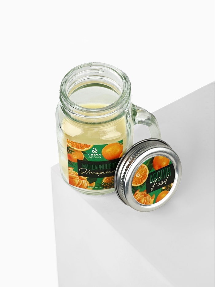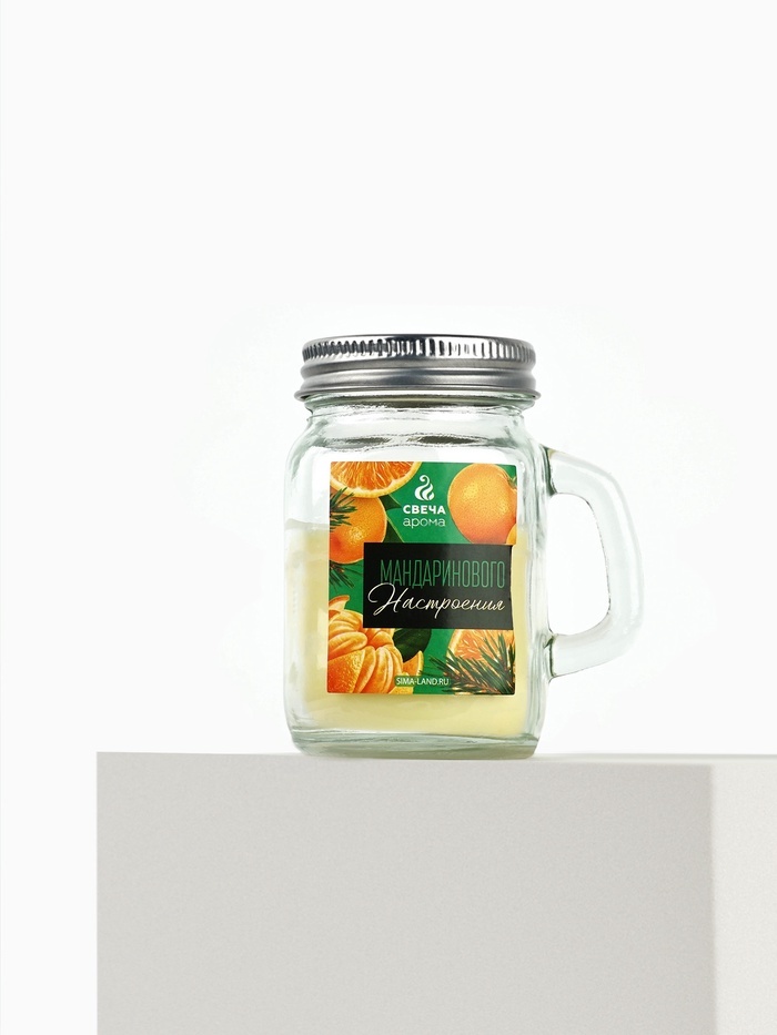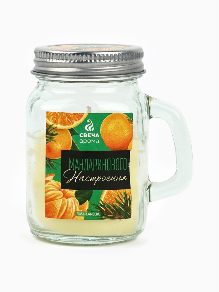 Ароматическая свеча новогодняя в банке «Цитрусовое настроение», мандарин, 7?8.5?5 см Свеча для интерьера вашего дома (7 х 5 х 8,5 см). Лучше всего наша свеча подходит для оригинального подарка и для д... Показать описаниеекора. Внутренняя атмосфера дома наполняется волшебным теплом и уютом при потрескивании горящей свечи. Данный интерьерный элемент создаёт ощущение распаленного камина. Фитиль горит размеренно и не коптит. Декор для дома впишется в любой интерьер. Восковая, декоративная свеча оформлена в прозрачную банку из жаропрочного стекла, что выглядит красиво и необычно.