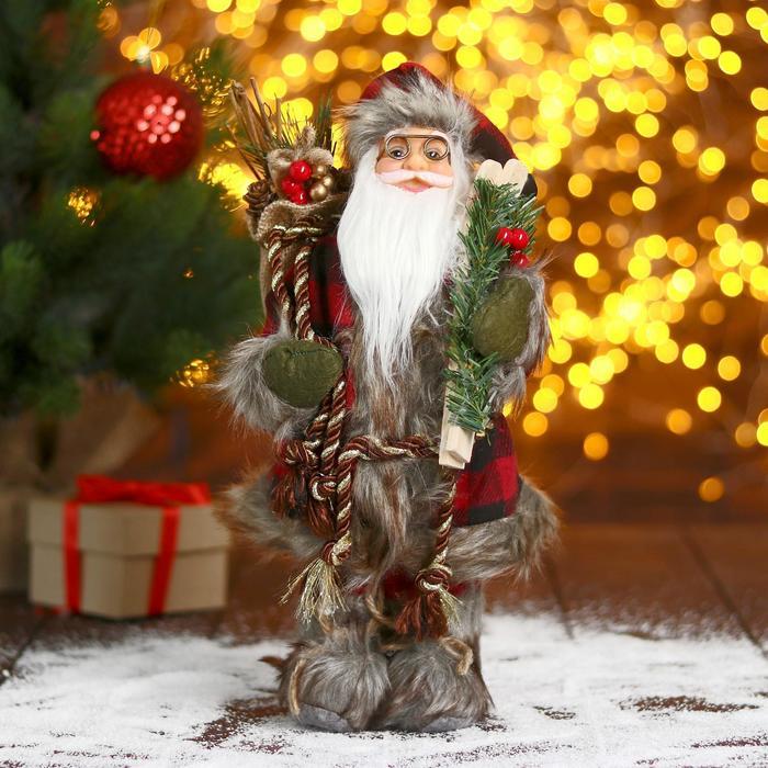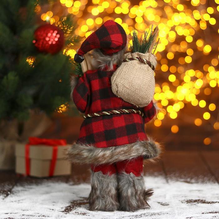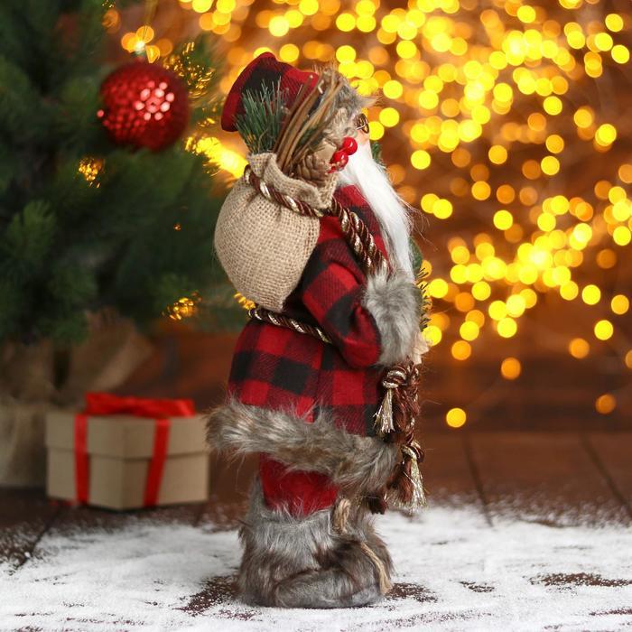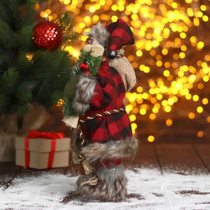 Дед Мороз под ёлку «Зимнее волшебство. В красной шубке в клетку с подарками» двигается, 40 см