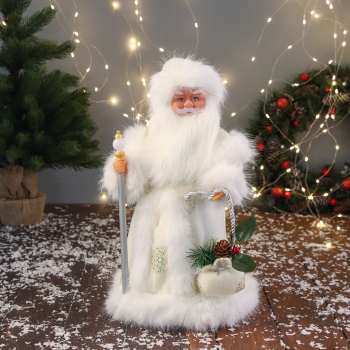 Дед Мороз под ёлку «Зимнее волшебство. В кафтане с мехом и узорным посохом», 30 см, бело-красныйДед Мороз под ёлку «Зимнее волшебство. В кафтане с мехом и узорным посохом», 30 см, бело-красныйДед Мороз под ёлку «Зимнее волшебство. В кафтане с мехом и узорным посохом», 30 см, бело-красный