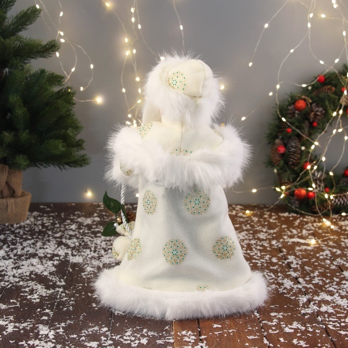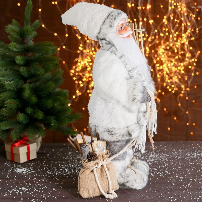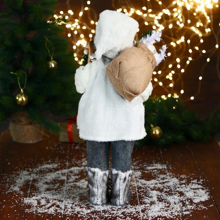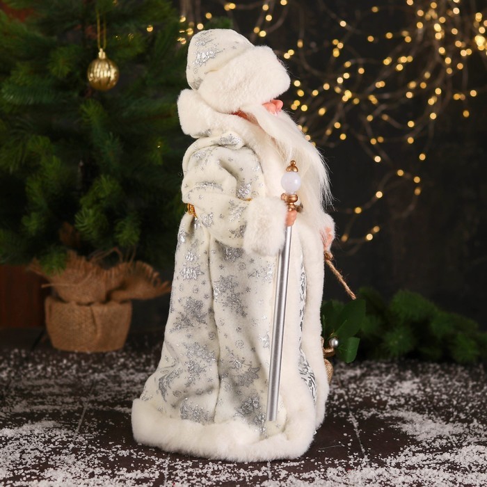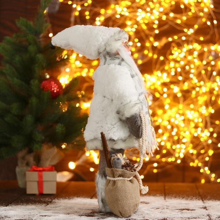 Дед Мороз под ёлку «Зимнее волшебство. В пушистой шубе, с мешком» двигается, 40 см, белый
