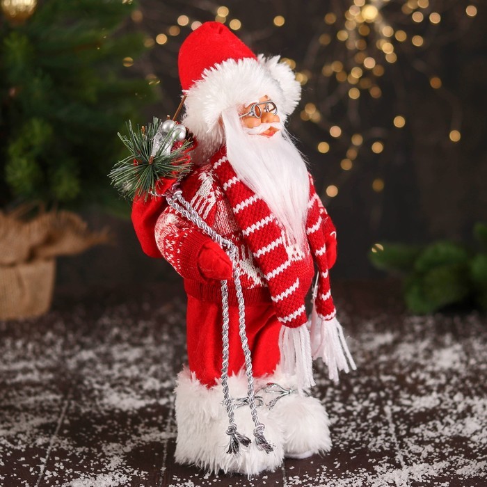 Дед Мороз под ёлку «Зимнее волшебство. В мохнатой шубке с лыжами», 30 см Вопросы по товару