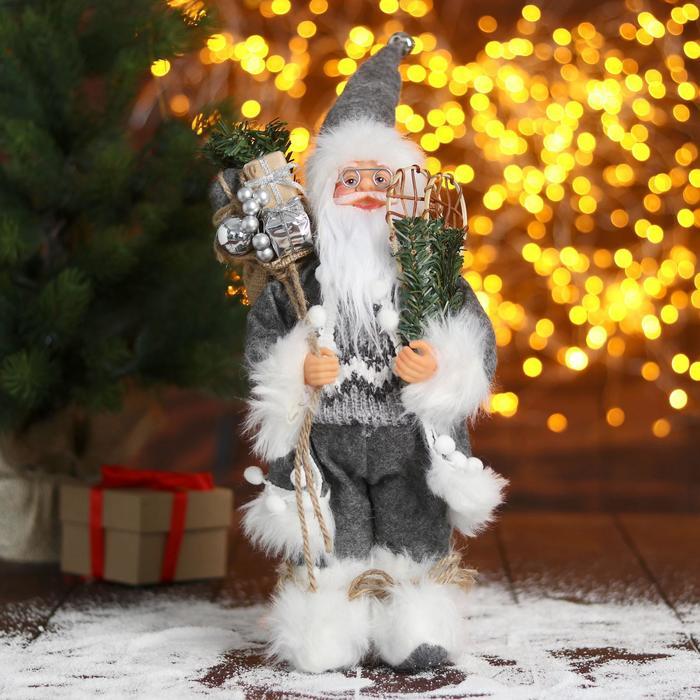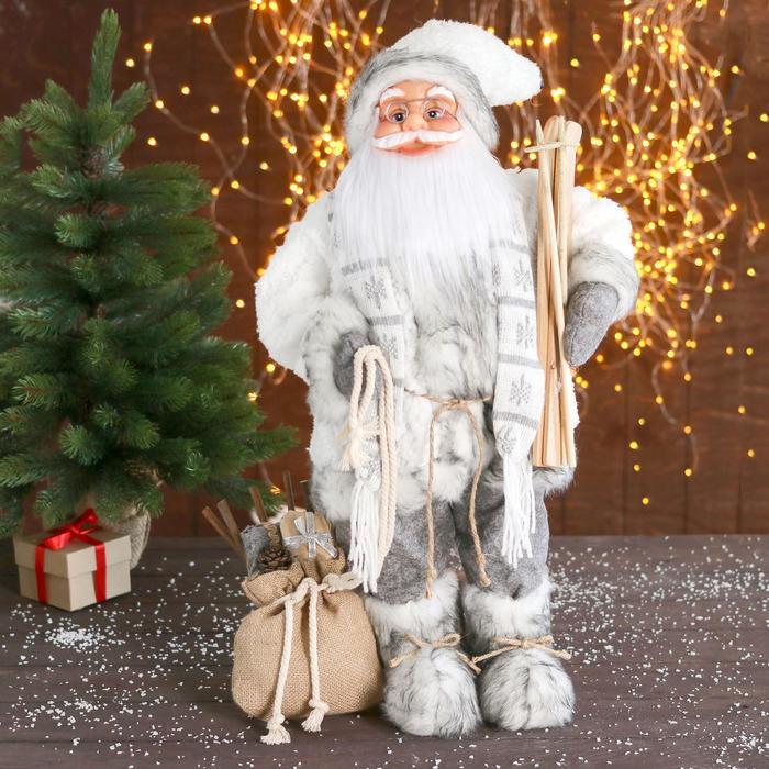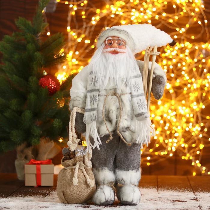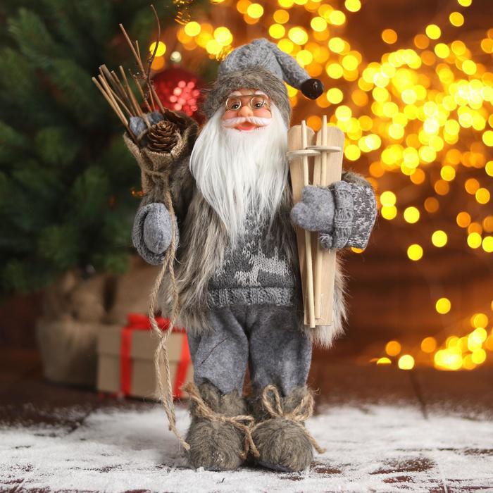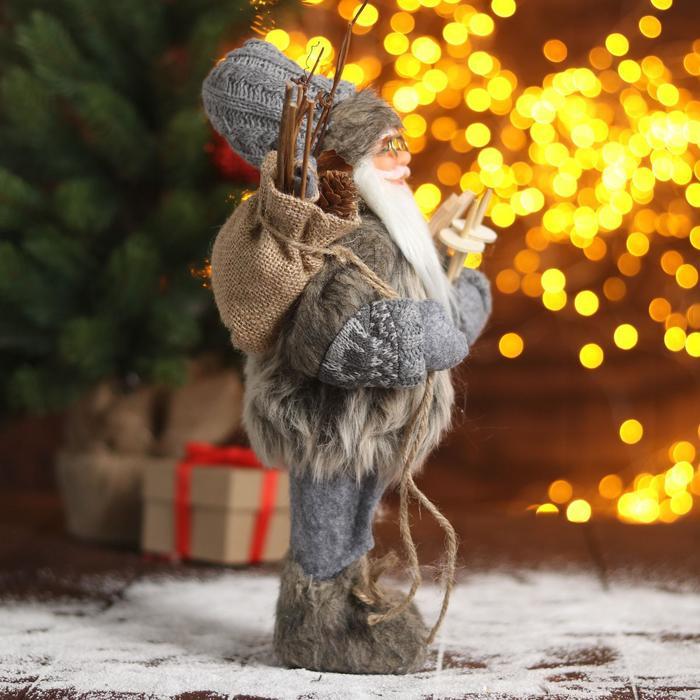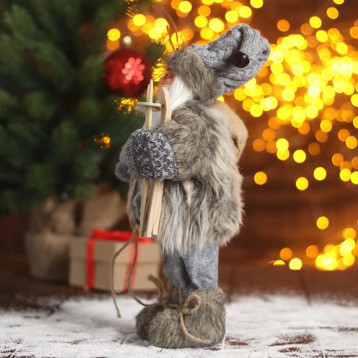 Дед Мороз под ёлку «Зимнее волшебство. В сером костюмчике с лыжами», 30 см Вопросы по товару