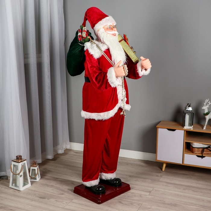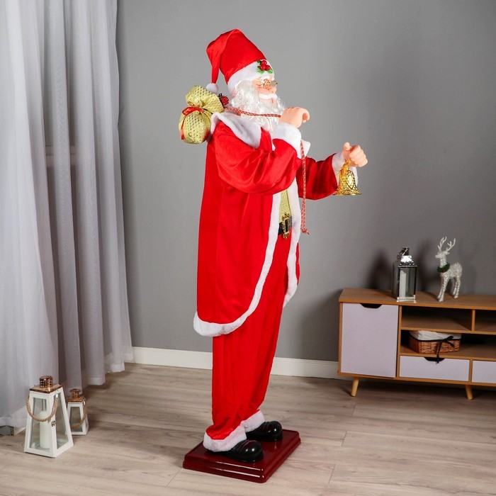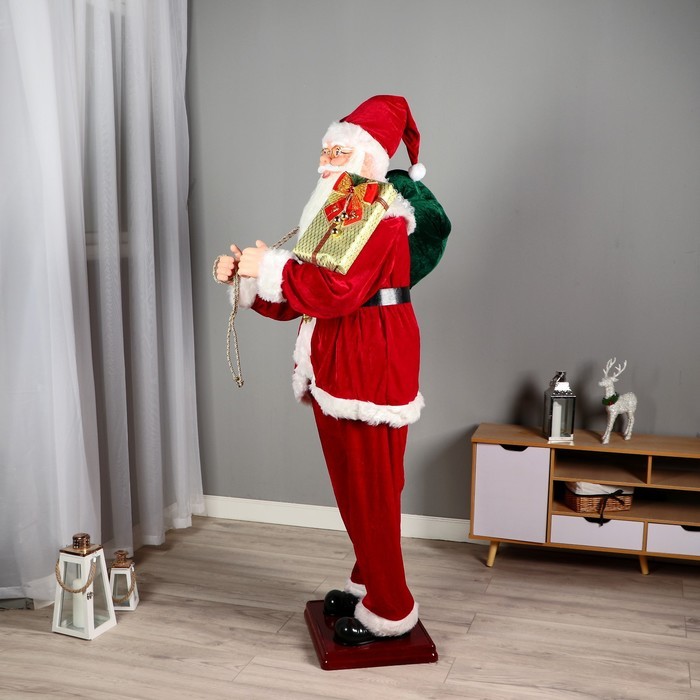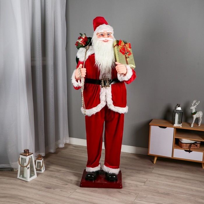Дед Мороз под ёлку «Зимнее волшебство. В красной шубке в клетку с подарками» двигается, 40 см Вопросы по товару